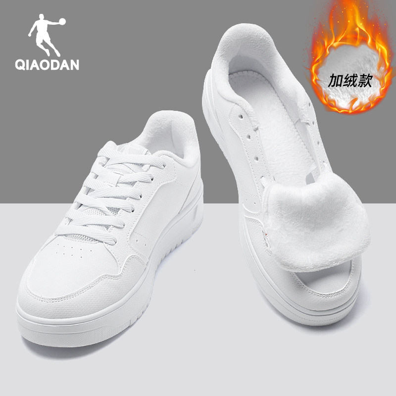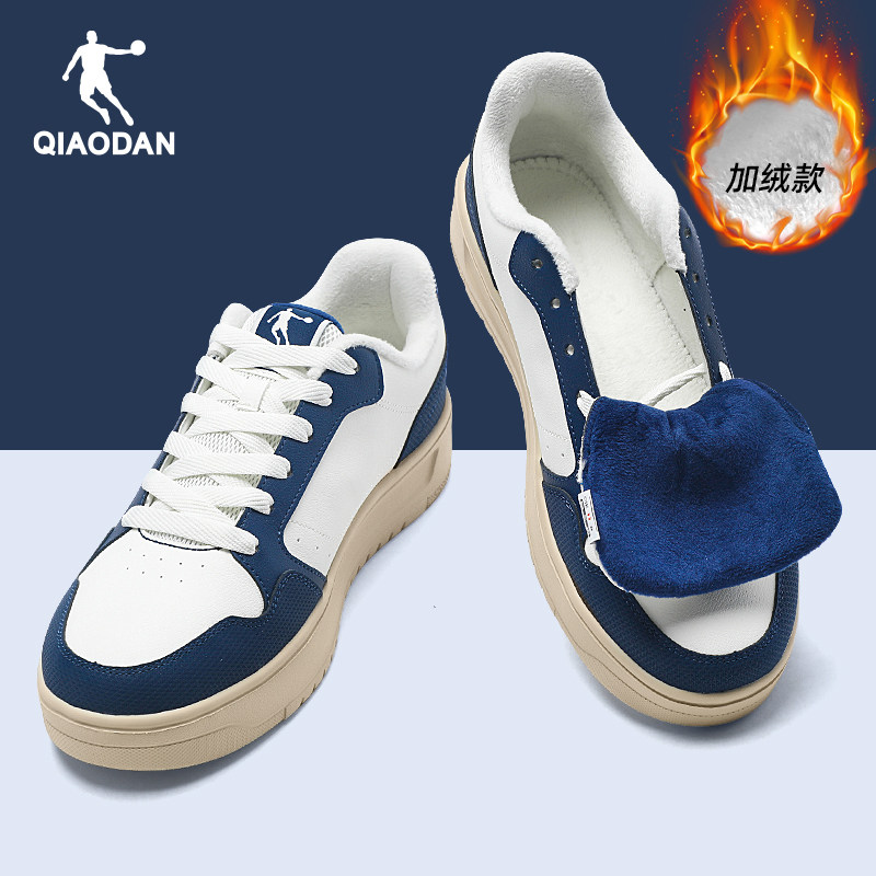 乔丹加绒黑色板鞋男2025冬季新款低帮百搭鞋子男士棉鞋运动小黑鞋