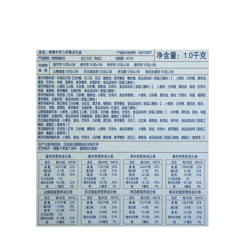 稻香村京八件礼盒1000g 传统特产糕点礼盒零食礼品大礼包团购北京