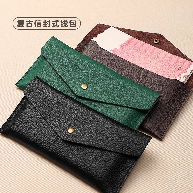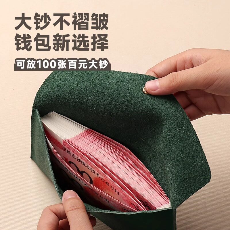 真皮质感钱包女士新款一片式薄长款钱夹袋男式大钞现金收纳零钱包