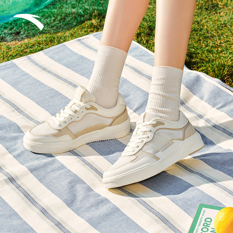 安踏焦糖丨网面透气低帮板鞋女鞋夏季平底小白鞋运动鞋122628024