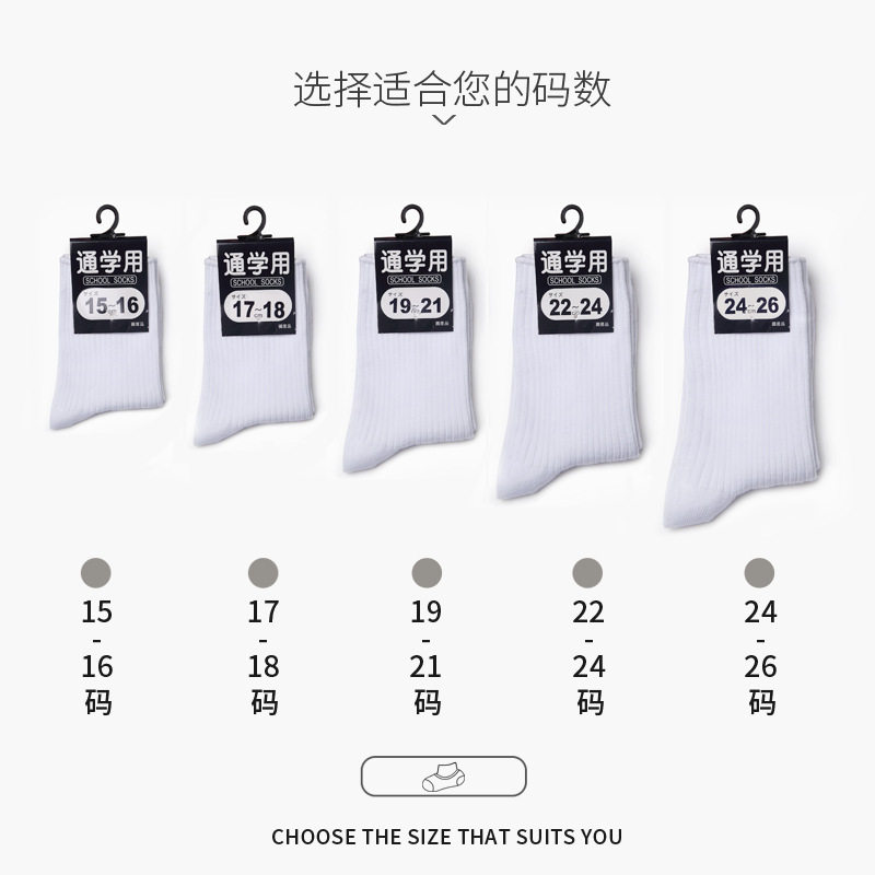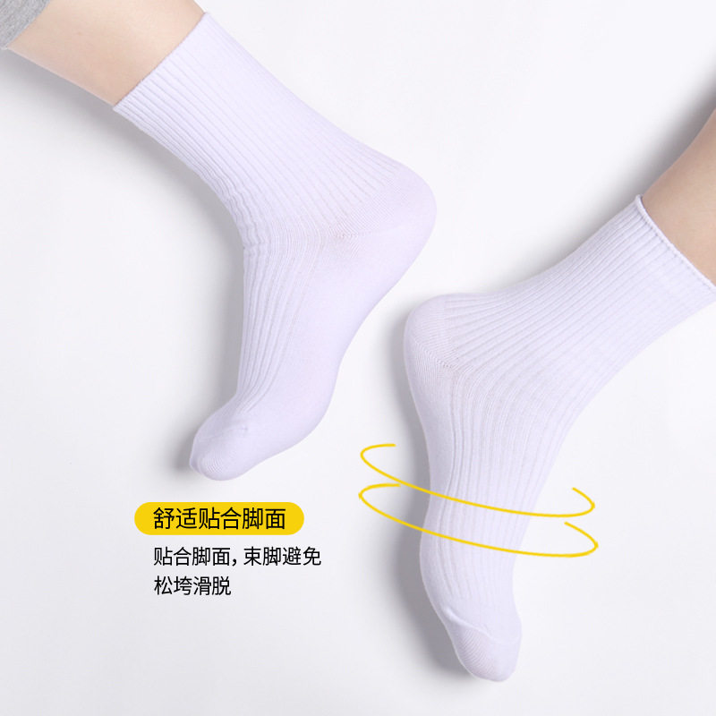 儿童袜子棉袜男童中筒白色袜子夏季薄款运动长袜女童学生纯色棉袜