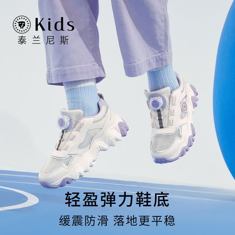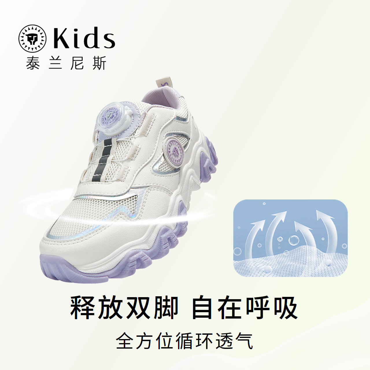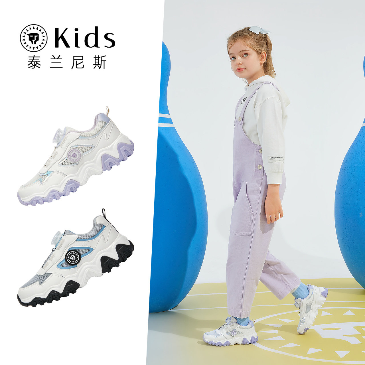 泰兰尼斯旋转钮扣运动鞋春季新款男女童跑步鞋轻便防滑减震休闲鞋