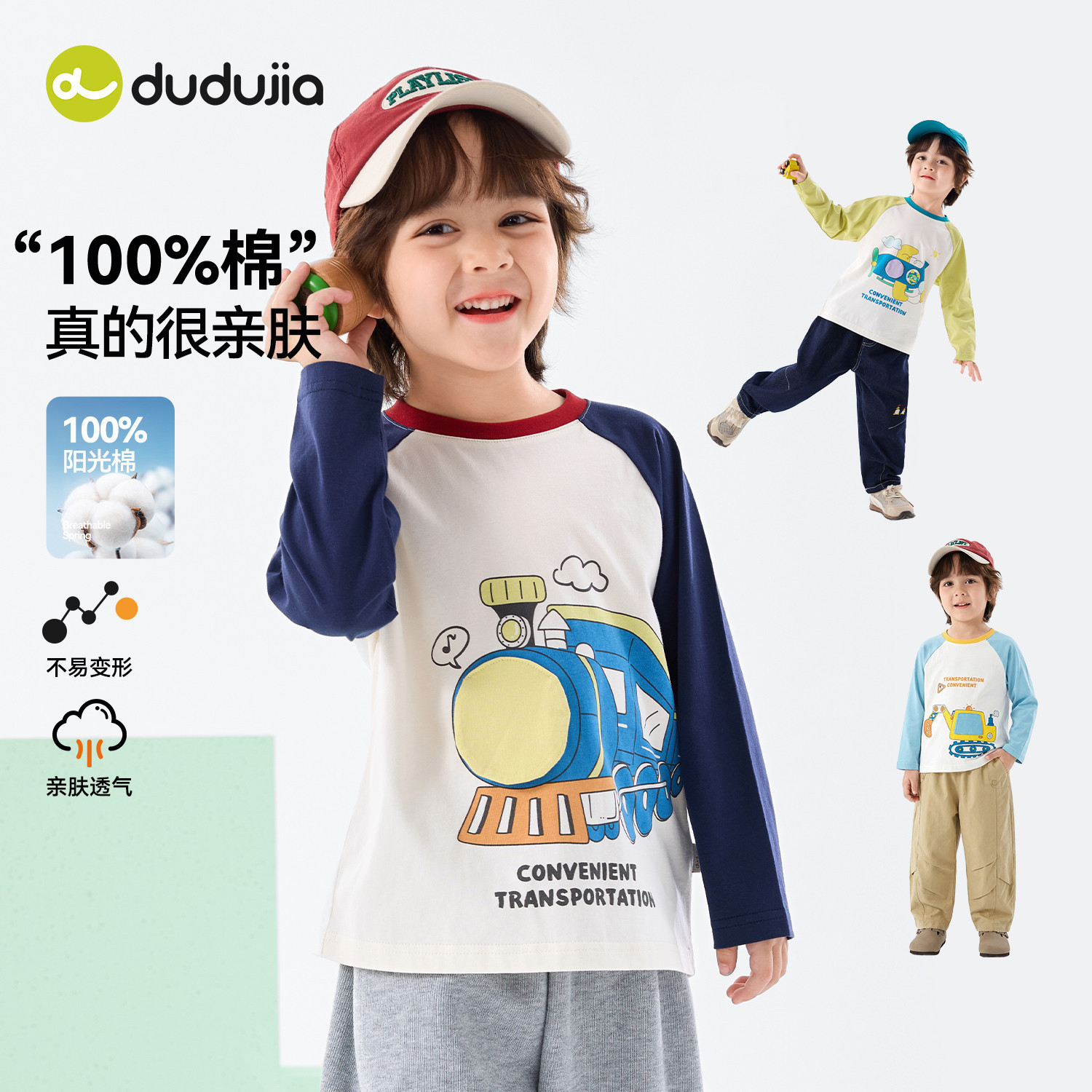 【100%棉】嘟嘟家男童T恤春秋儿童上衣纯棉宝宝卡通内搭t女童春装