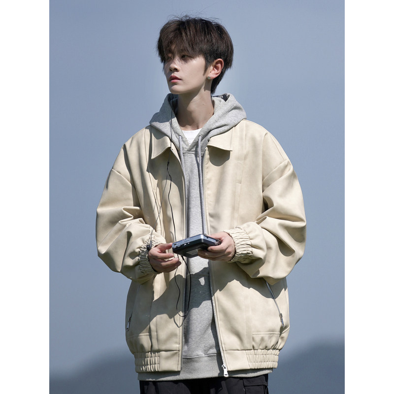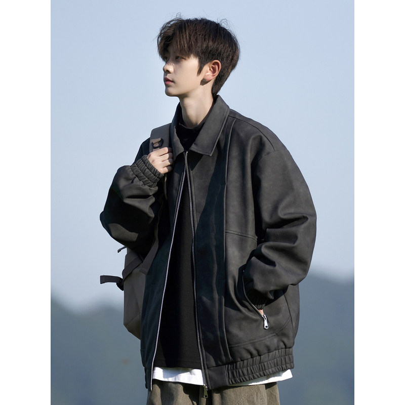 美式复古翻领pu皮夹克男秋季高级感潮牌大码宽松痞帅男生外套男款