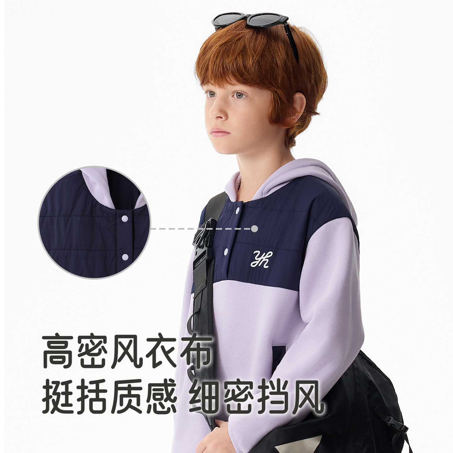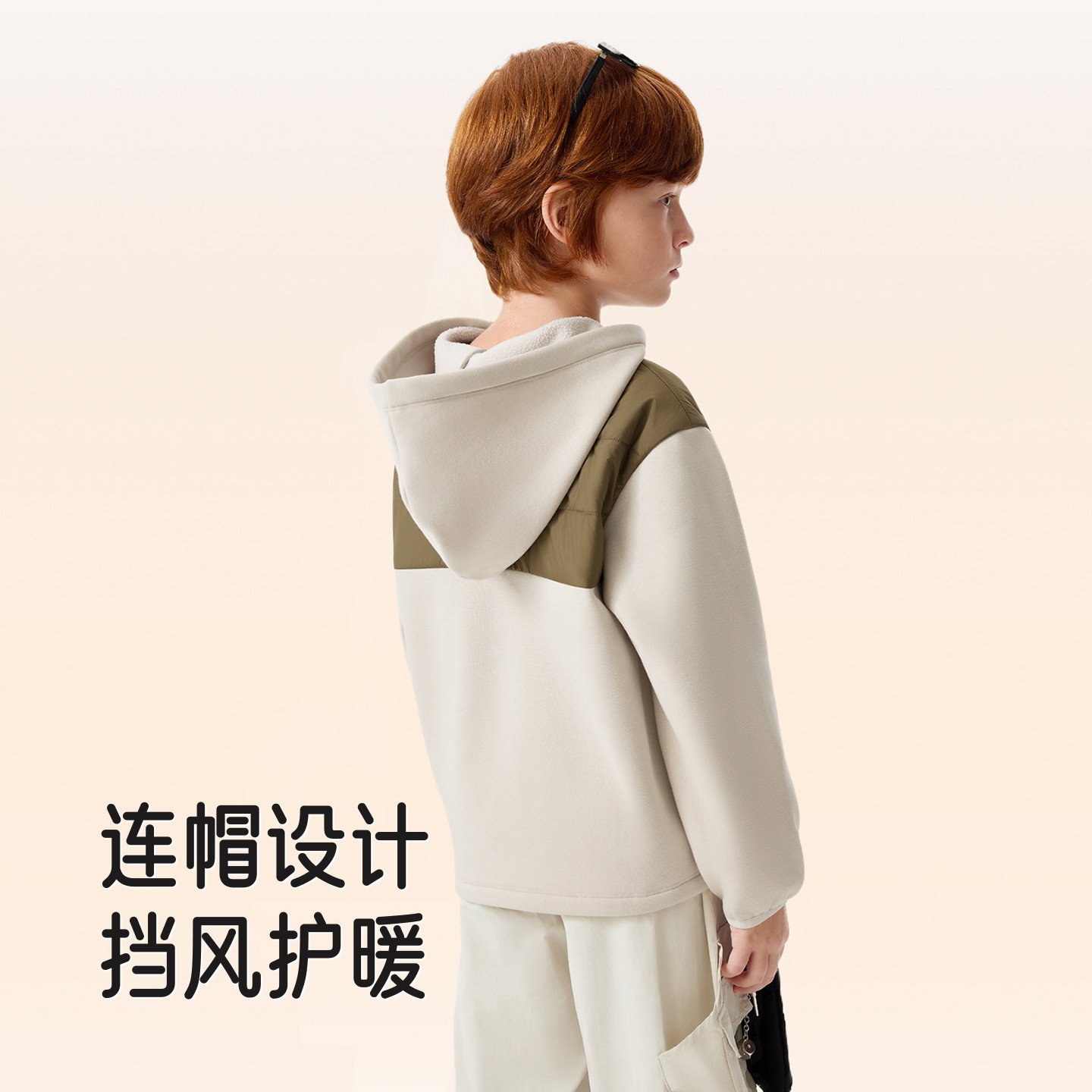 英氏儿童卫衣连帽男童加绒加厚春秋春季女童针织拼色时尚新款外套