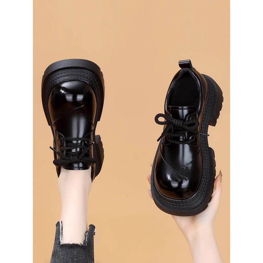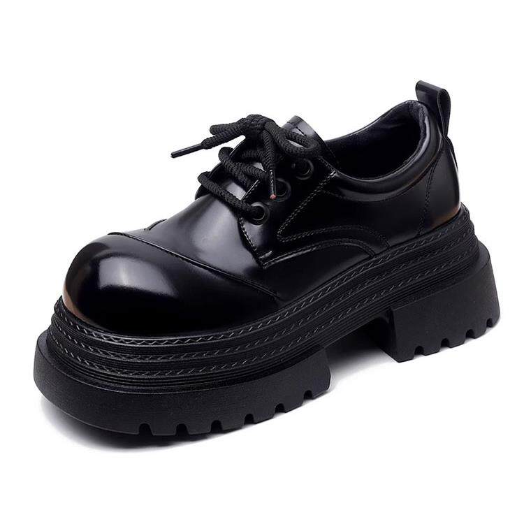 香港真皮厚底增高乐福鞋女2025秋季新款系带德比单鞋英伦风小皮鞋