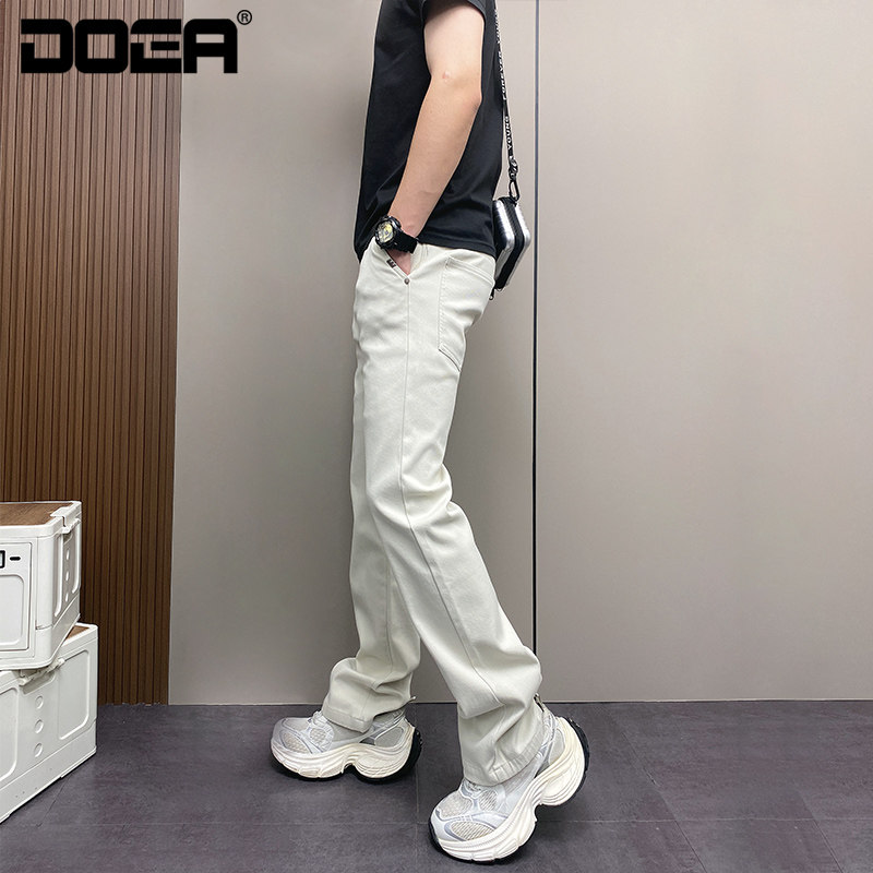高端微喇牛仔裤男士2026新款春秋季纯色男裤弹力直筒休闲裤子男款
