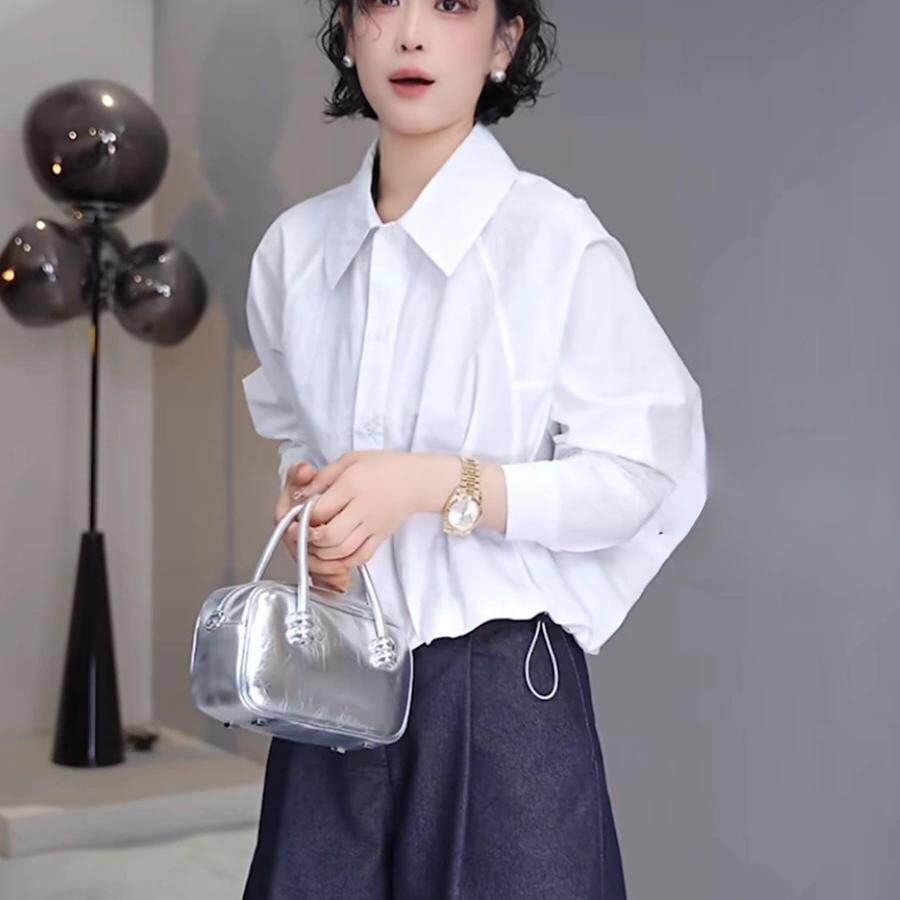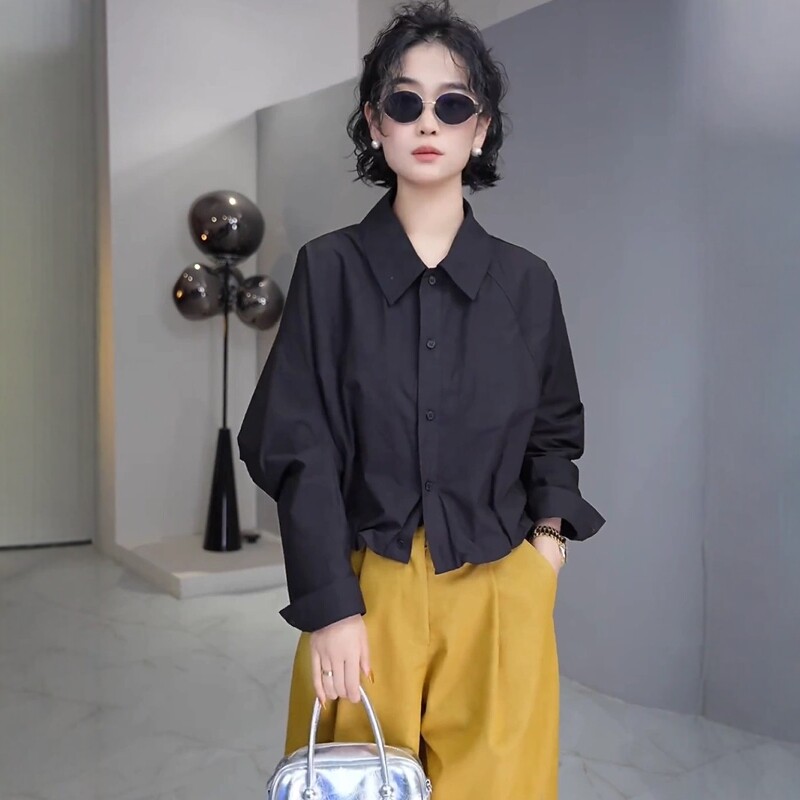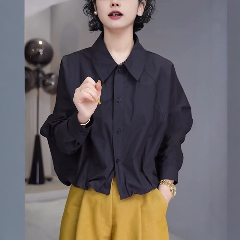 黑色衬衫女款2026年新款春季设计感高级显瘦内搭叠穿衬衣短款上衣