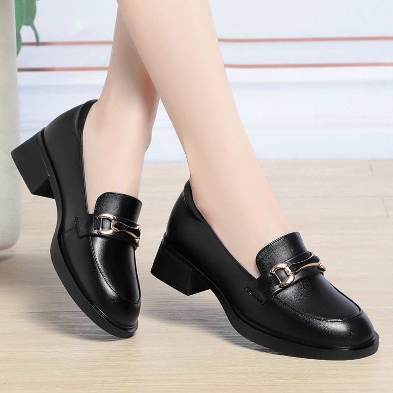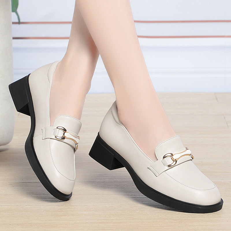 意尔康2026春季新款女单鞋正品真皮女鞋休闲时尚妈妈鞋中跟牛皮鞋