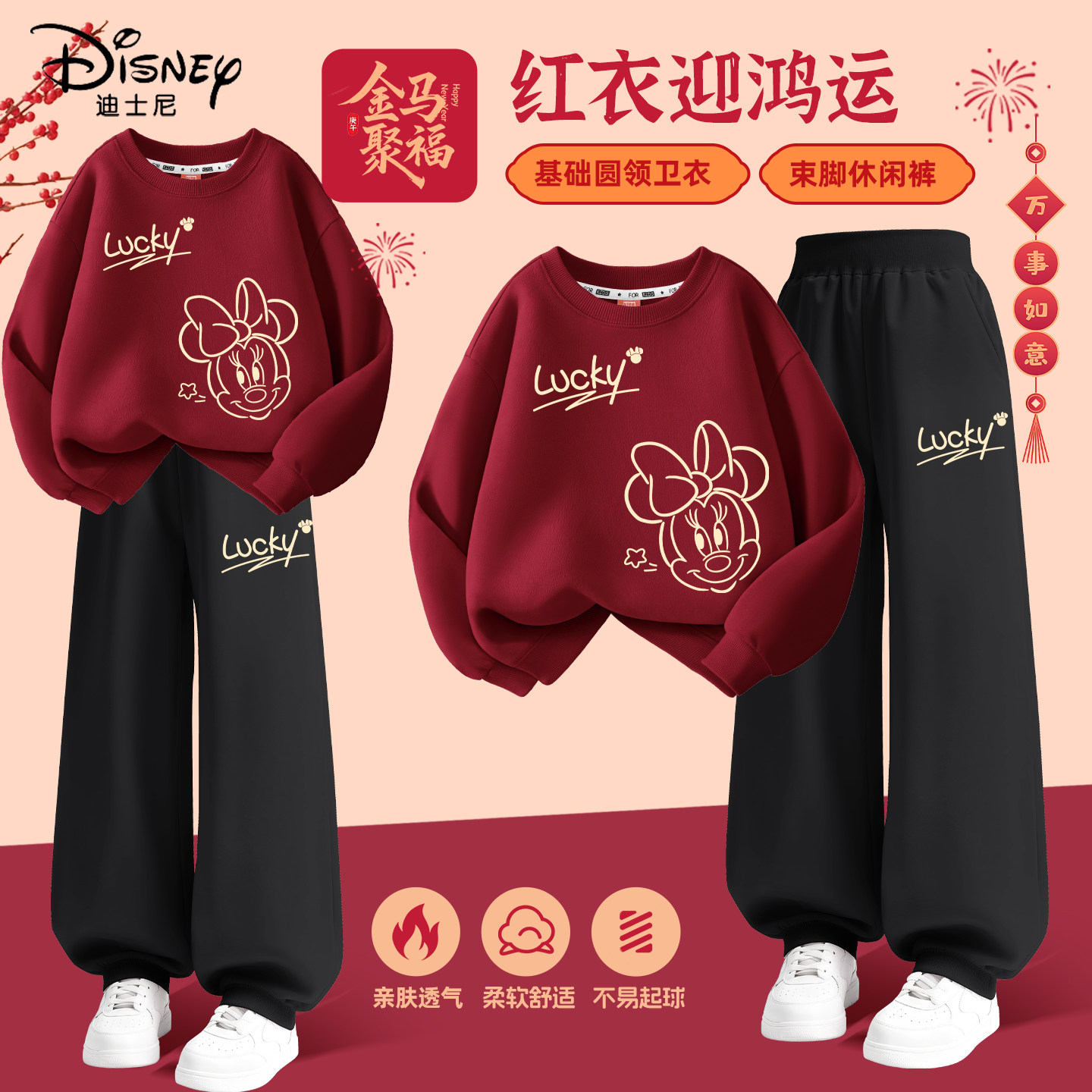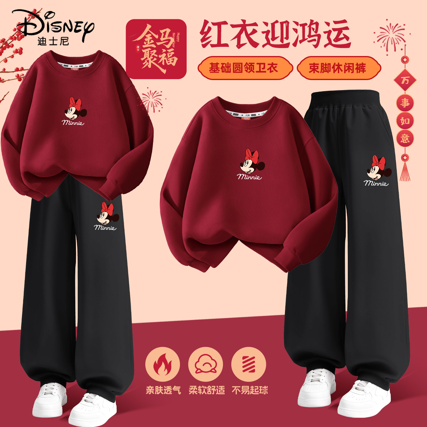 迪士尼拜年服女童不加绒卫衣2026新款童装新年唐装儿童套装小女孩