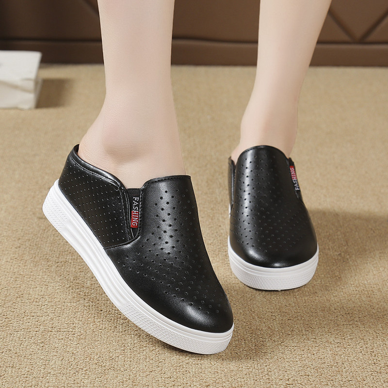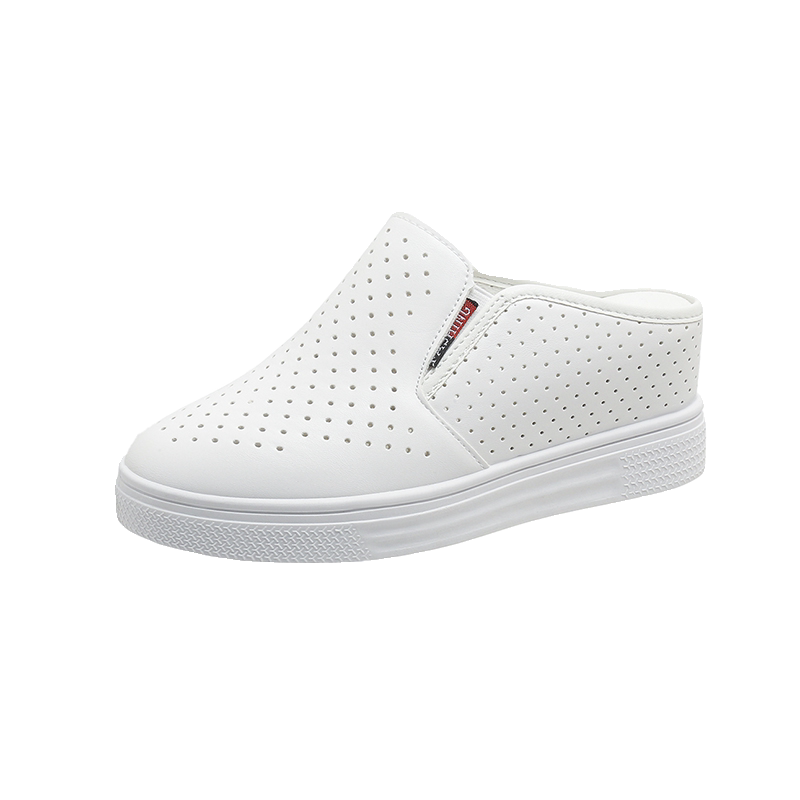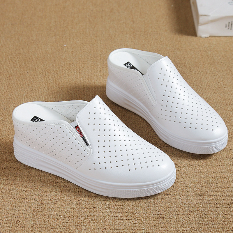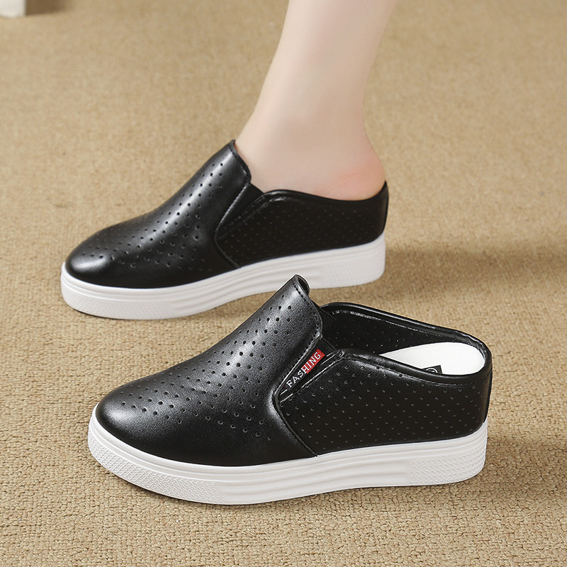 内增高一脚蹬小白鞋女鞋2026夏季新款百搭透气镂空坡跟包头半拖鞋