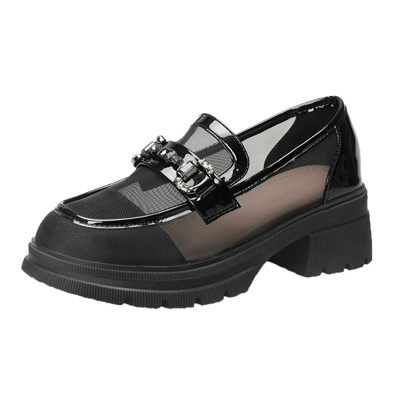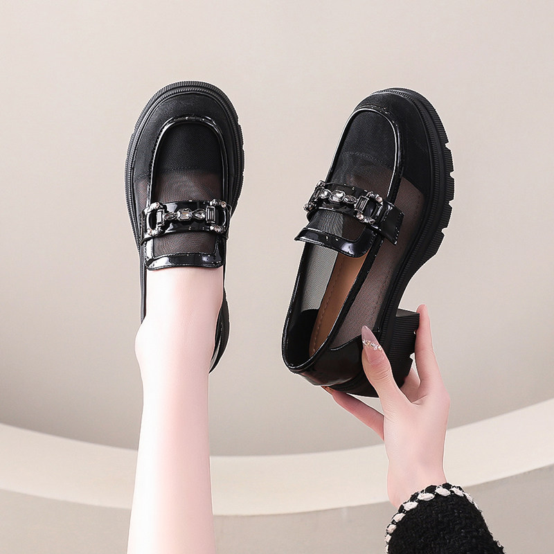 透气单鞋女春夏网纱乐福鞋一脚蹬厚底增高网面小皮鞋镂空jk女鞋子