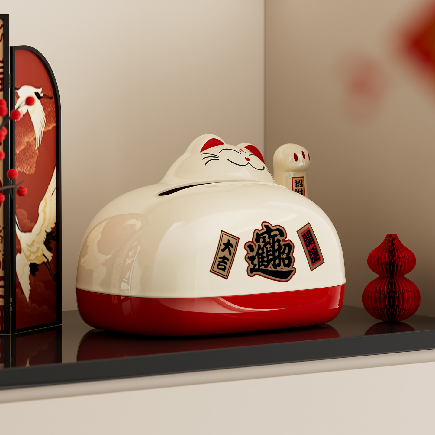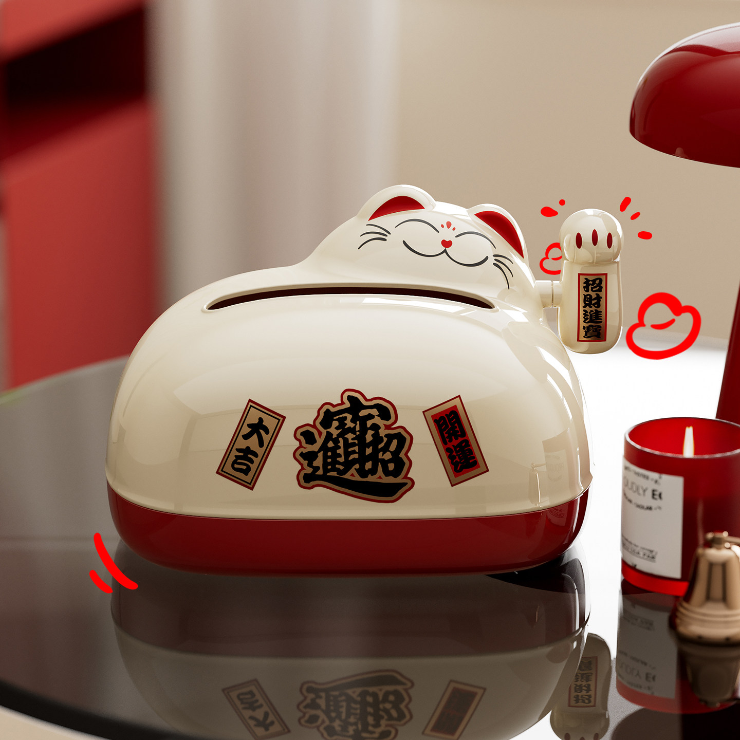 招财猫纸巾盒客厅家用茶几弹簧抽纸盒桌面餐巾纸收纳盒创意纸抽盒