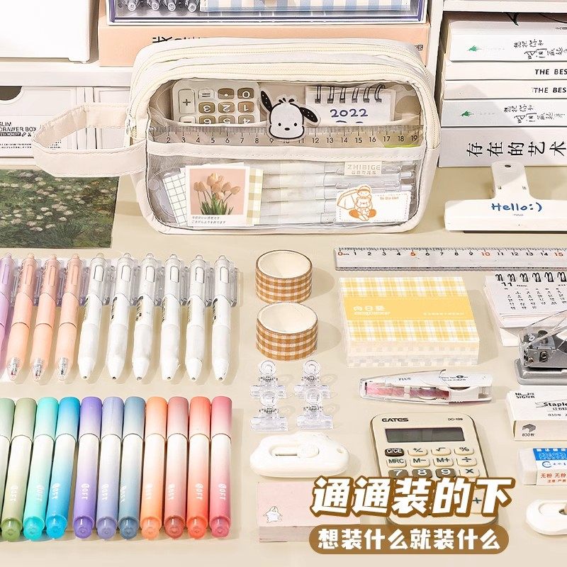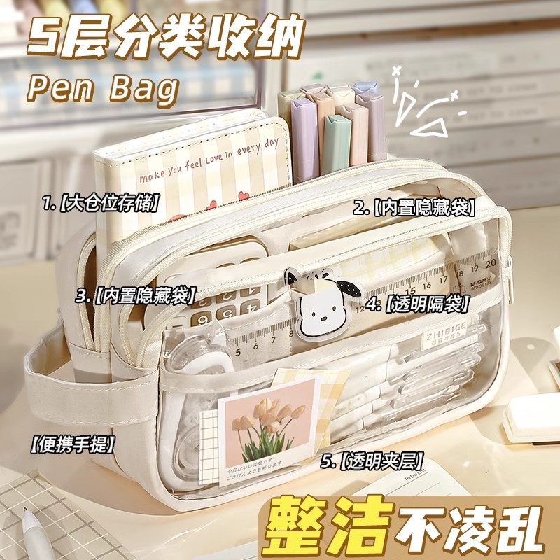 大容量透明笔袋女孩版2026年新款初中生铅笔盒高颜值简约日系ins文具盒女款女童小学生学生女生多层可放隐藏