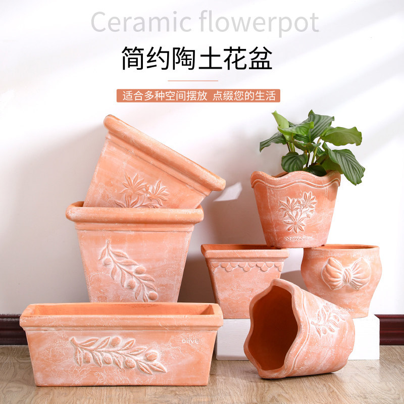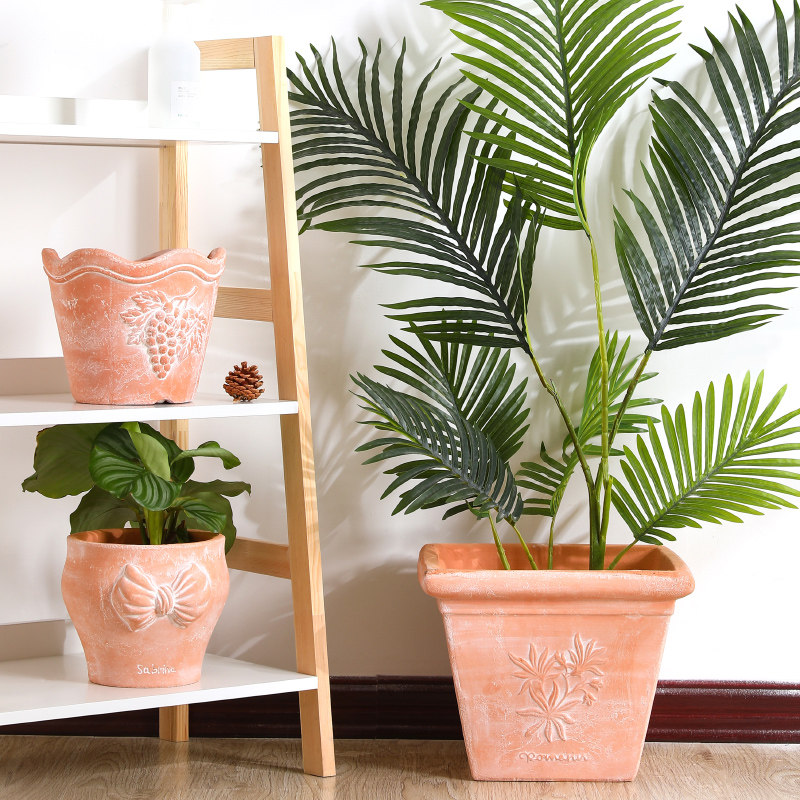 粗陶土透气手捏帝罗马大花盆客厅阳台花园大口径圆长方形落地花盆