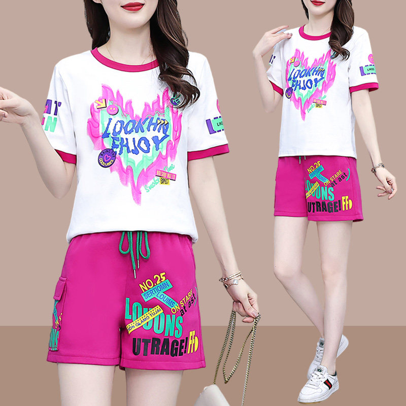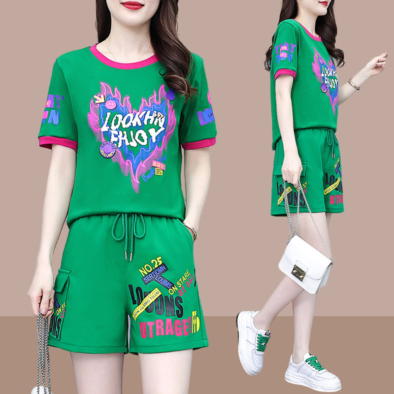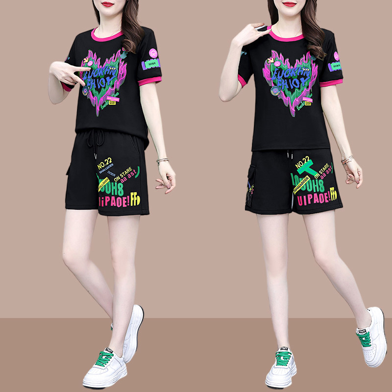 休闲短袖运动套装女士2026夏季新款小个子时尚减龄跑步短裤两件套