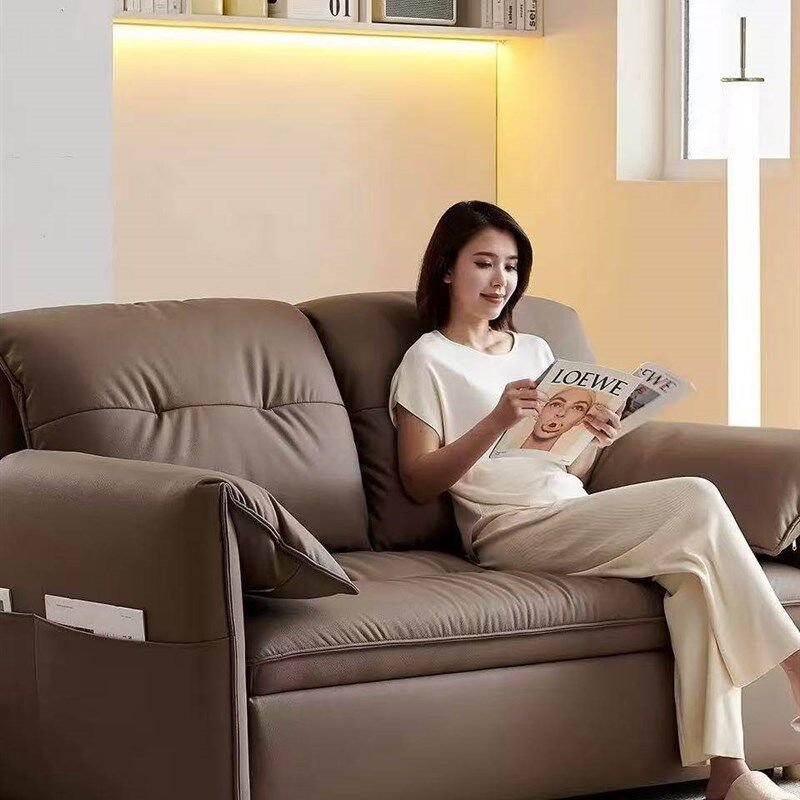 小户型救星!2025新款真皮沙发床客厅书房两用折叠一体简约款