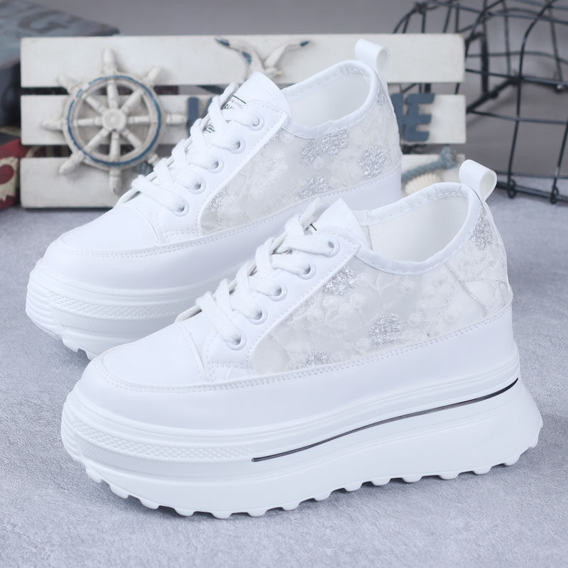 2026夏网透气小白鞋女小个子厚底松糕跟内增高8-12CM百搭休闲网鞋