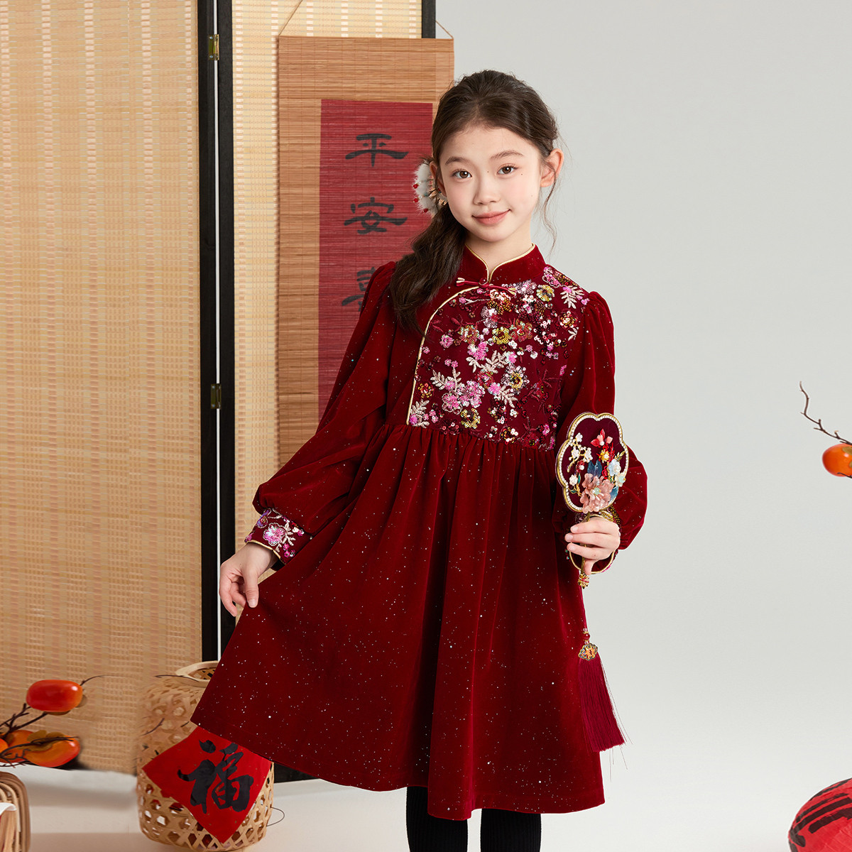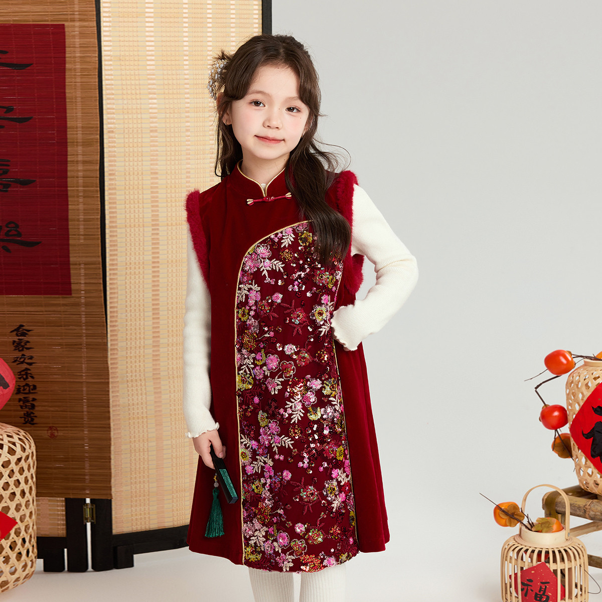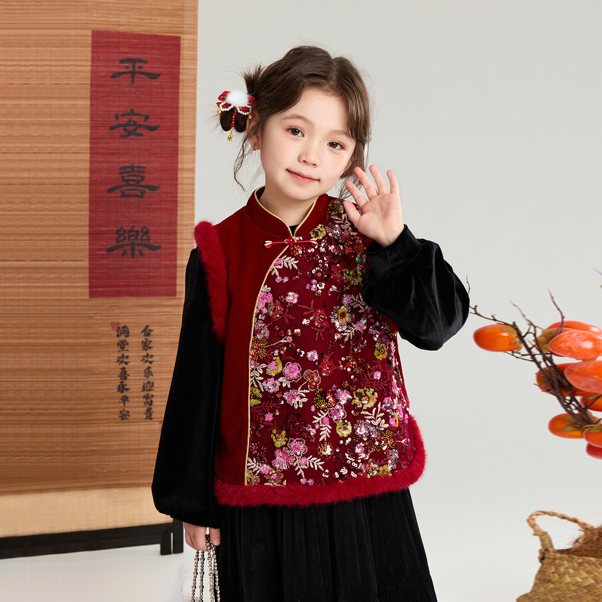 布丁哈鲁冬装女童童装洋气上衣2026秋冬新款儿童国风保暖拜年服