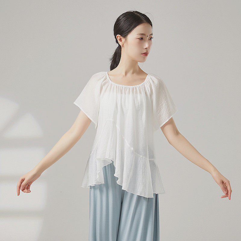 夏季短袖宽松现代舞中国舞古典舞蹈服练功服上衣女款新款外搭罩衫