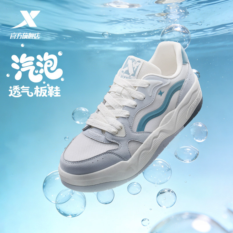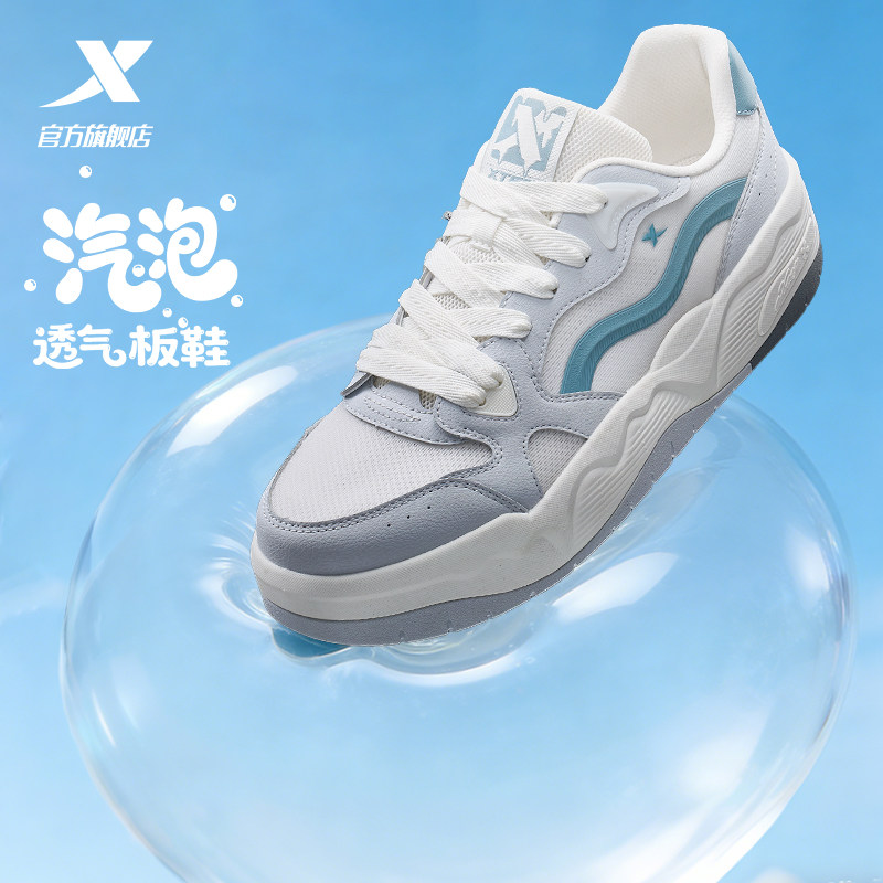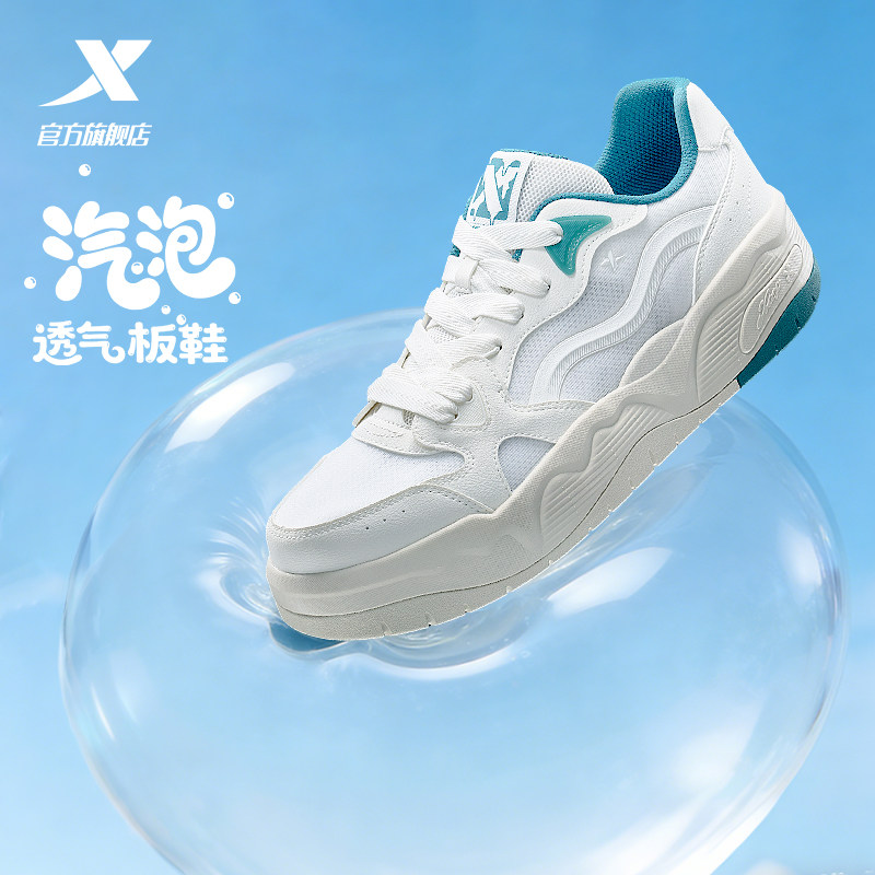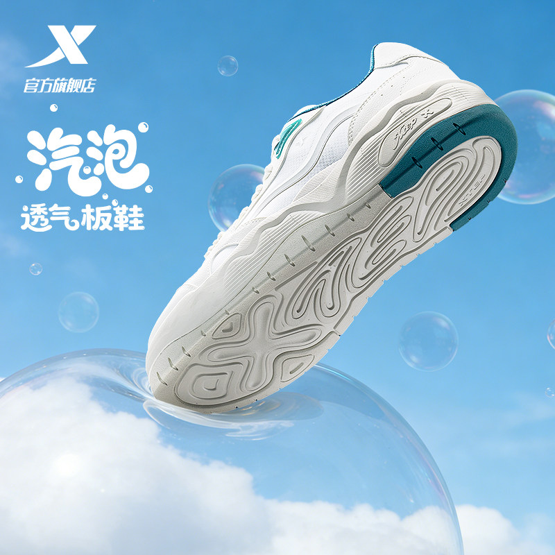 特步汽泡I板鞋男鞋夏季新款增高休闲鞋男士百搭网面透气运动鞋子