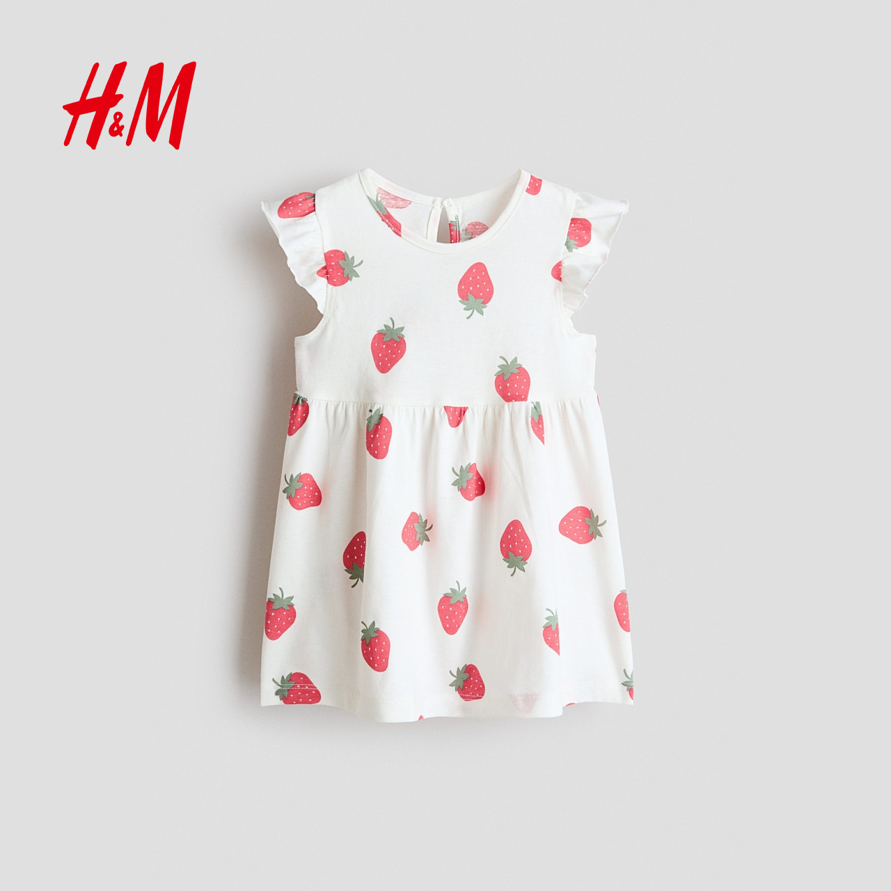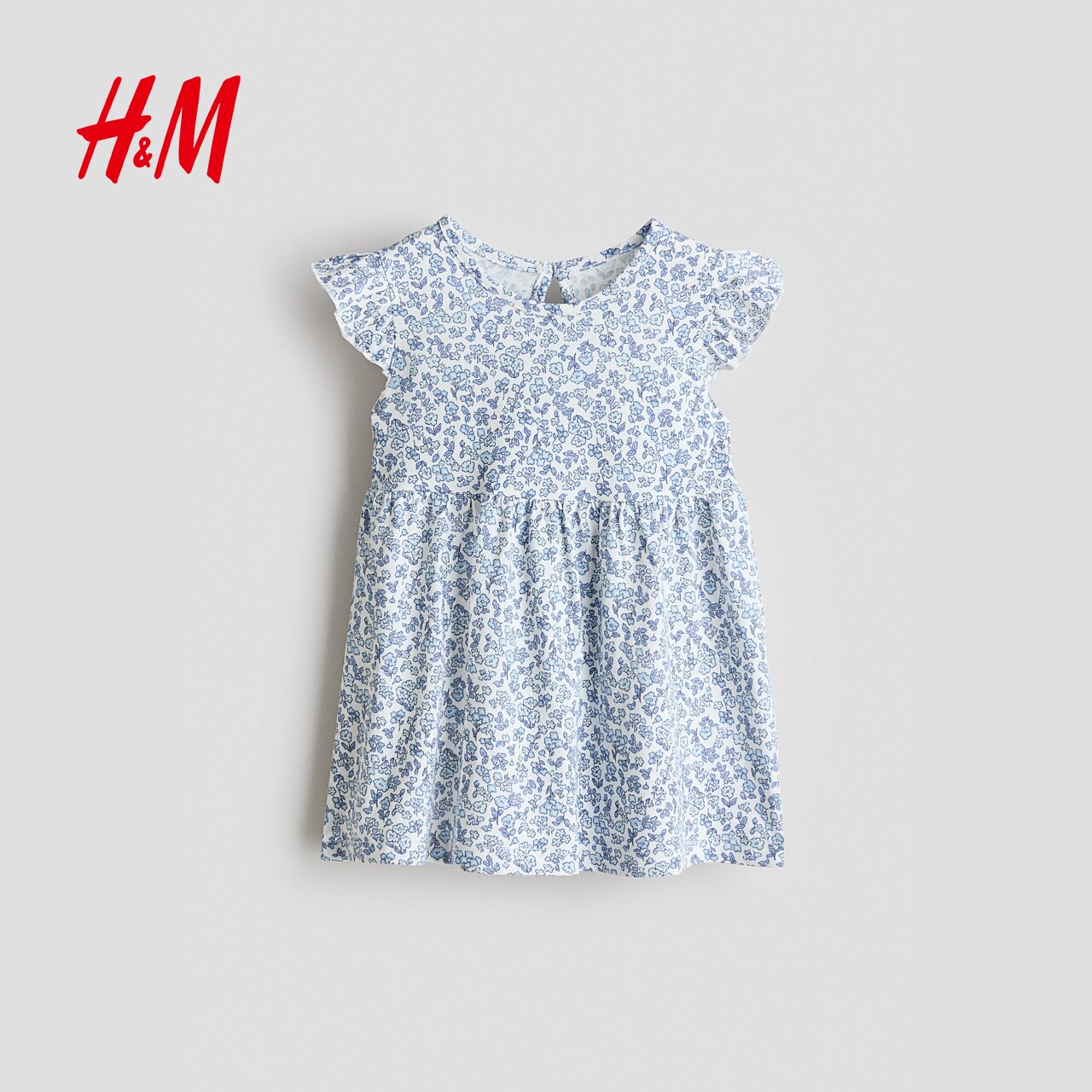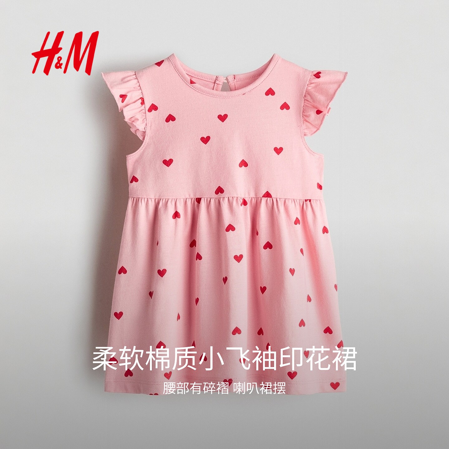 HM童装女婴裙子2026春季新款棉质飞袖印花洋气连衣裙1315438