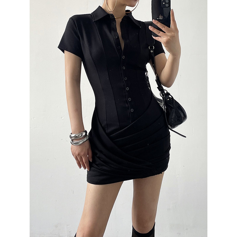 Acupstudio江右上 鱼骨收腰修身衬衫裙夏季短袖短款连衣裙