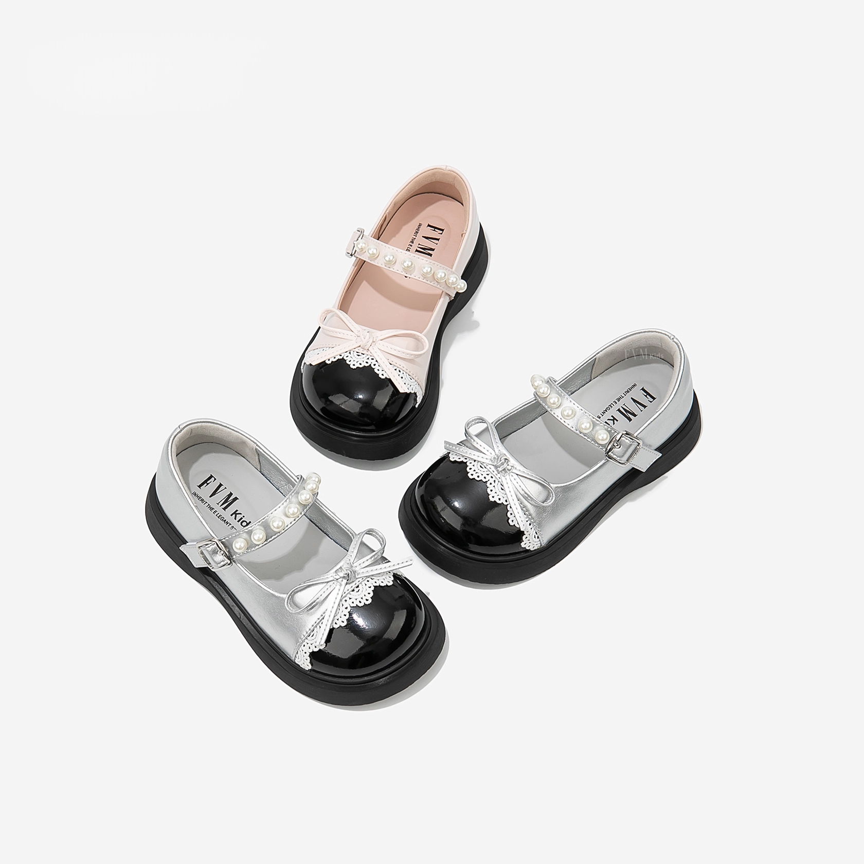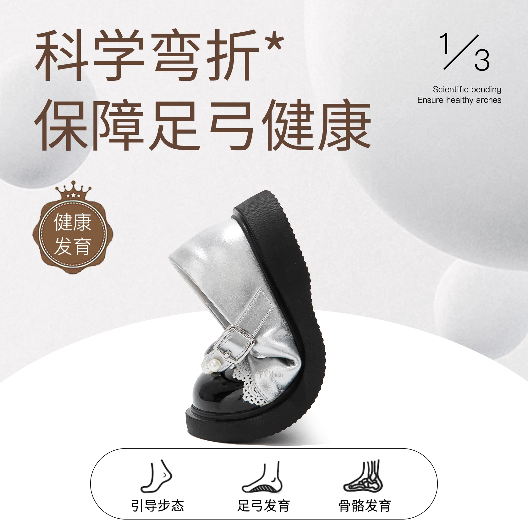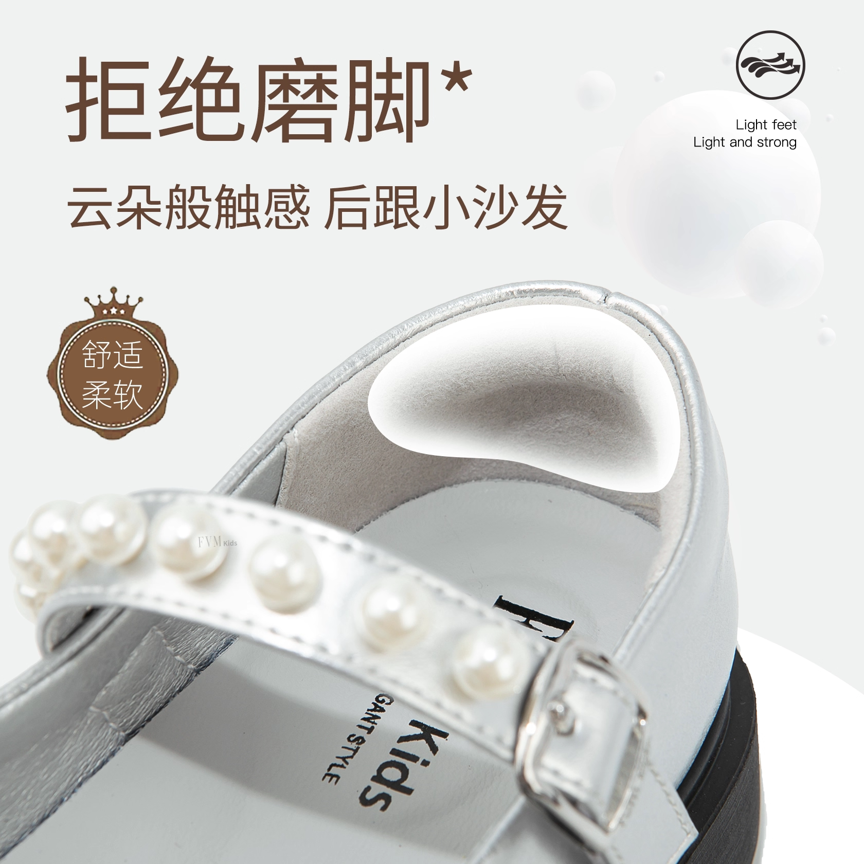 真皮女童公主鞋子银色小皮鞋2025新款夏季洋气女孩软底小香风单鞋