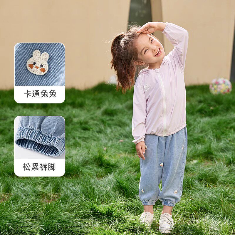 班喜迪女童牛仔裤2026春装宝宝薄款裤子儿童裤宽松休闲九分裤夏季