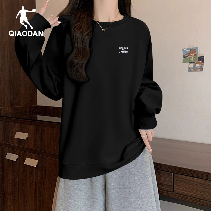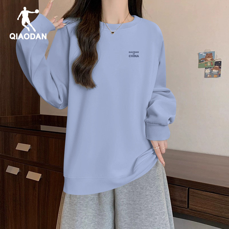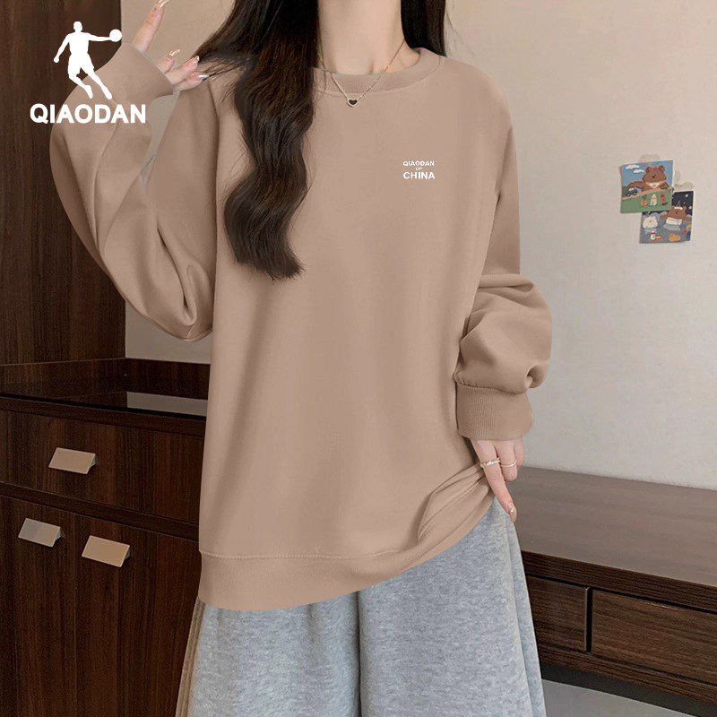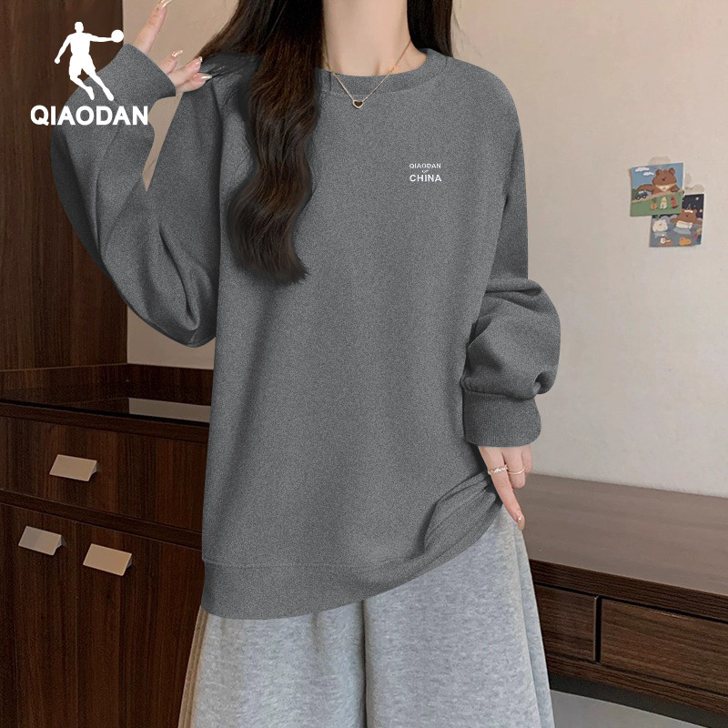乔丹圆领卫衣女款2026春秋季新款休闲宽松长袖套头衫纯色打底衫女
