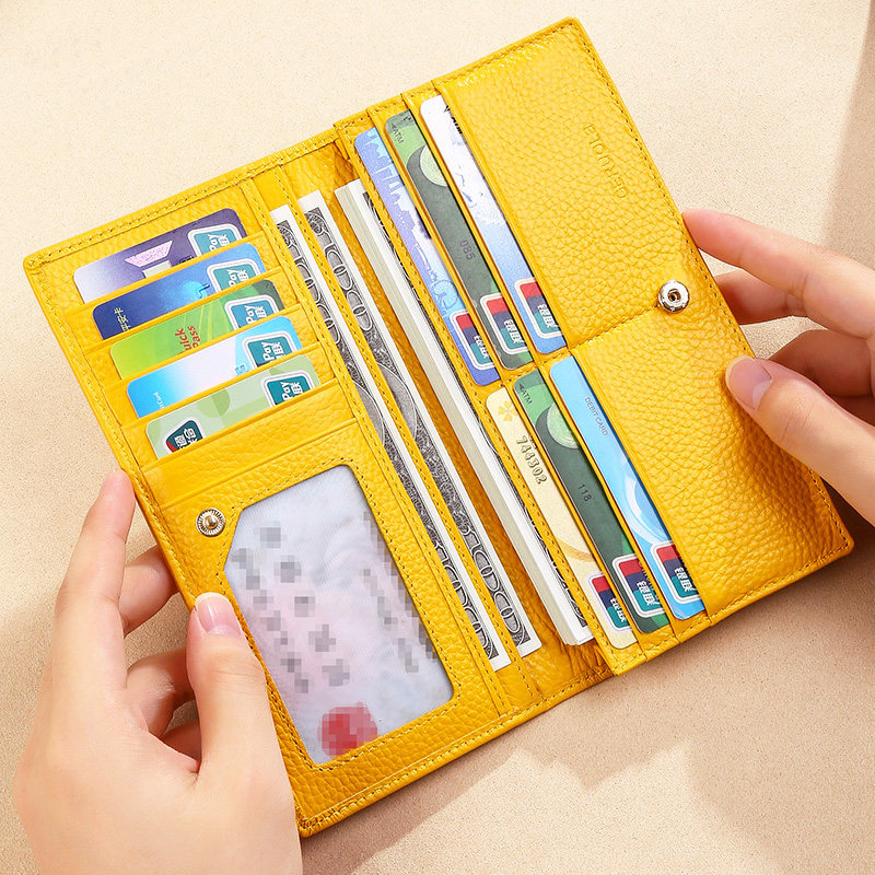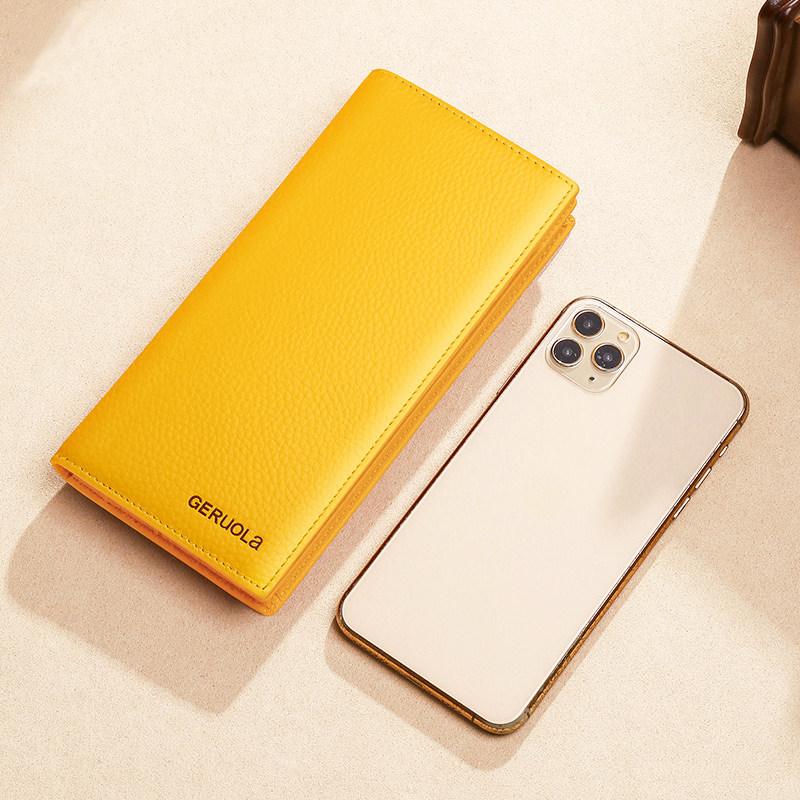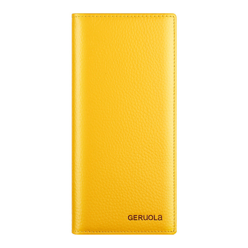 2026新款女士真皮钱包黄色长款招财钱夹简约超薄大容量牛皮男皮夹