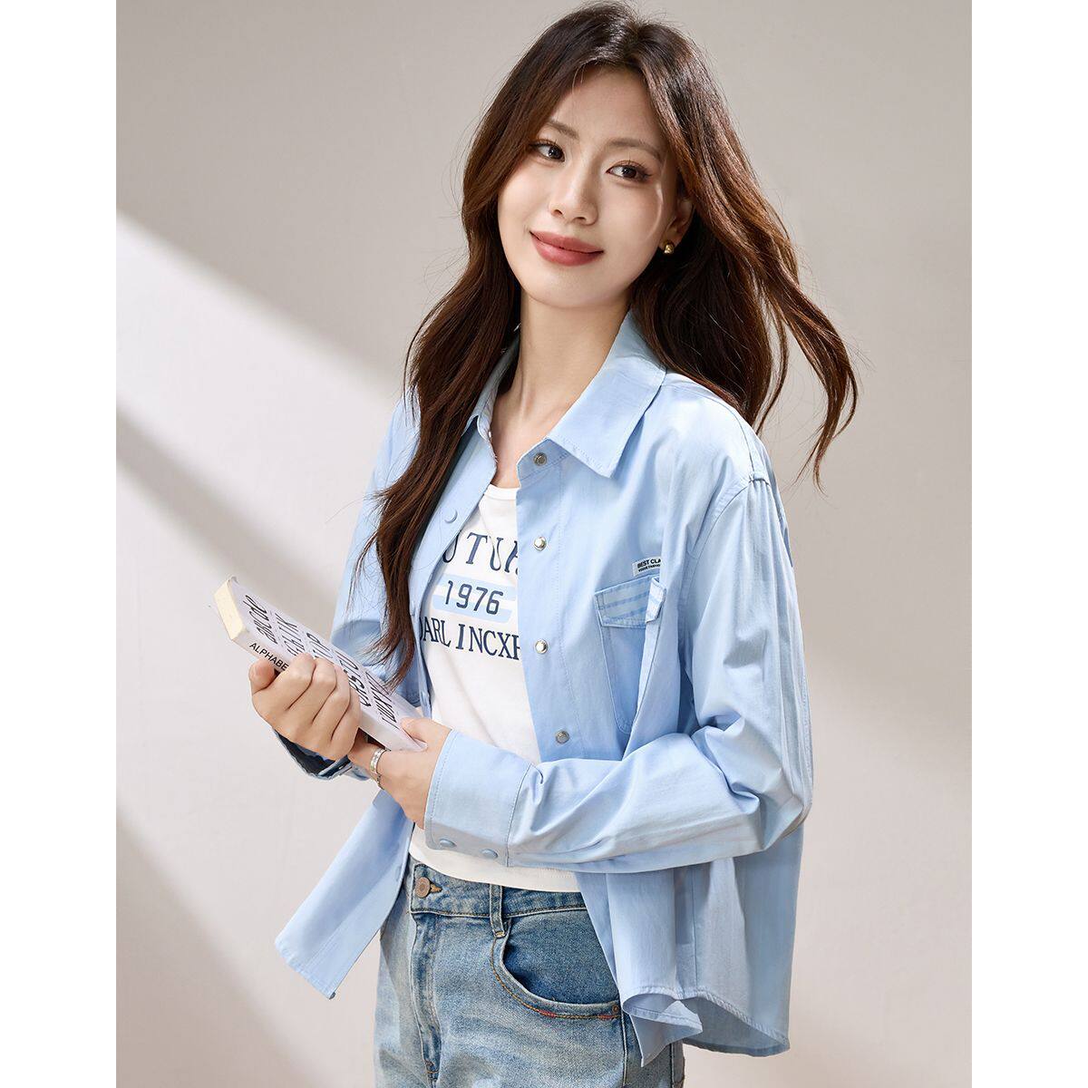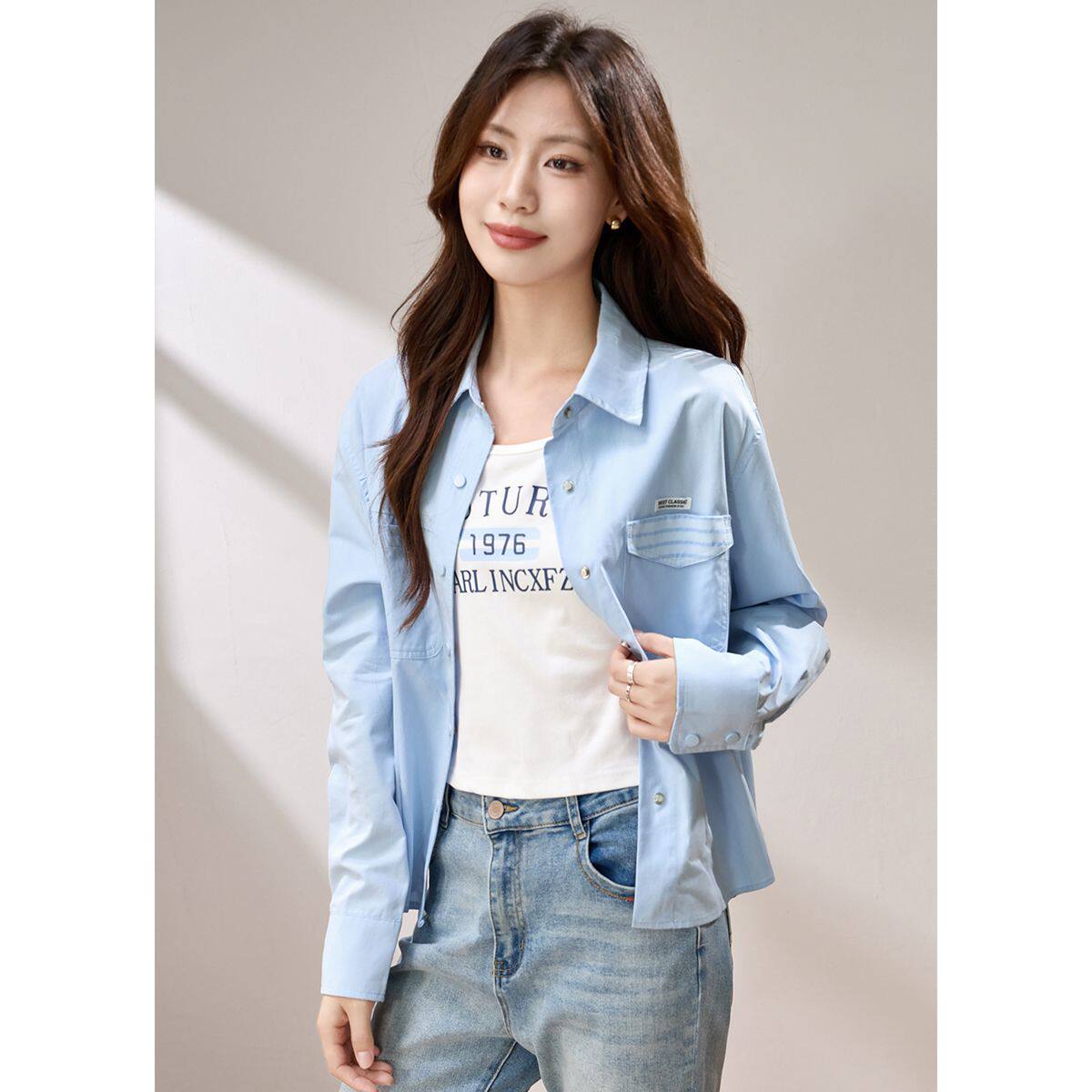 衬衫外套女春款2026新款韩系早春蓝色正肩长袖小个子夏天休闲防晒