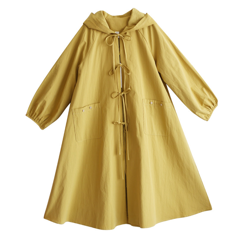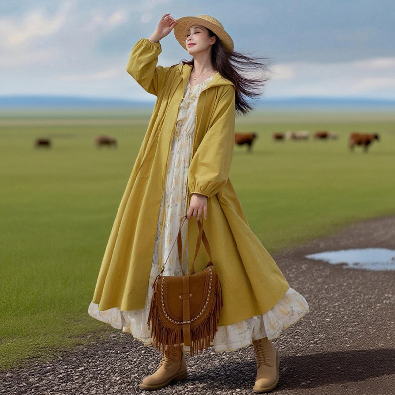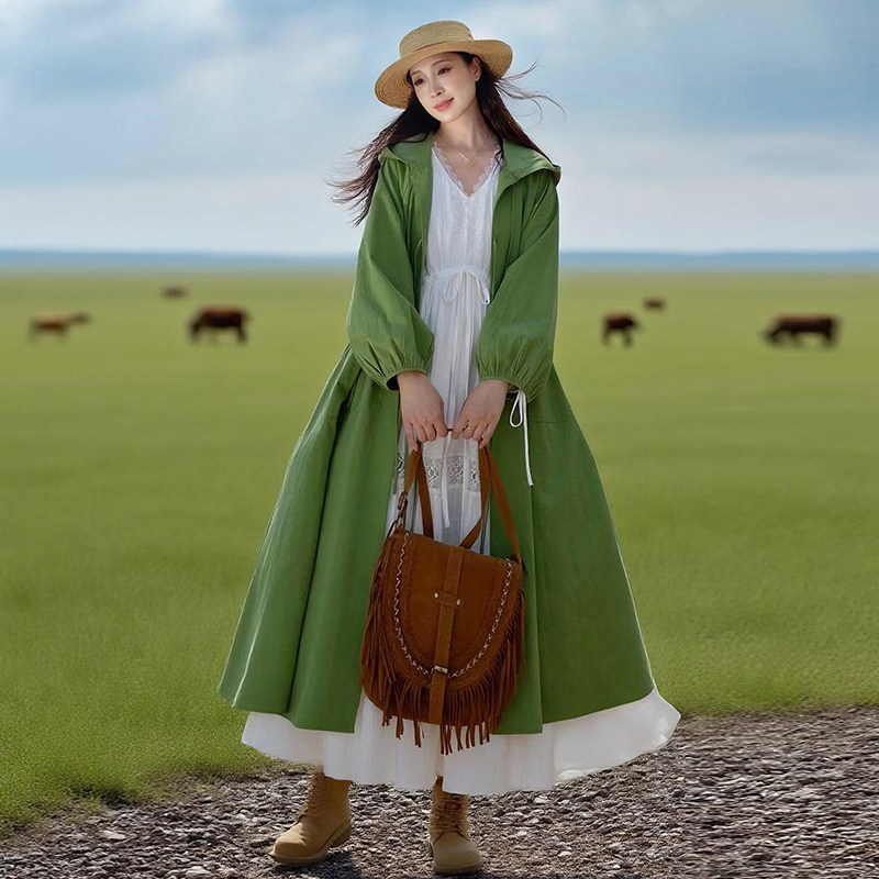 【远方有约】连帽百搭中长款风衣女款2025春秋季文艺纯棉系带外套