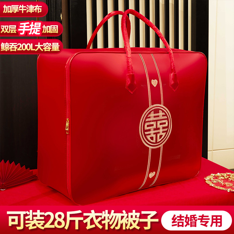婚庆被子收纳袋陪嫁喜被手提袋结婚毛毯专用袋牛津布红色四件套袋
