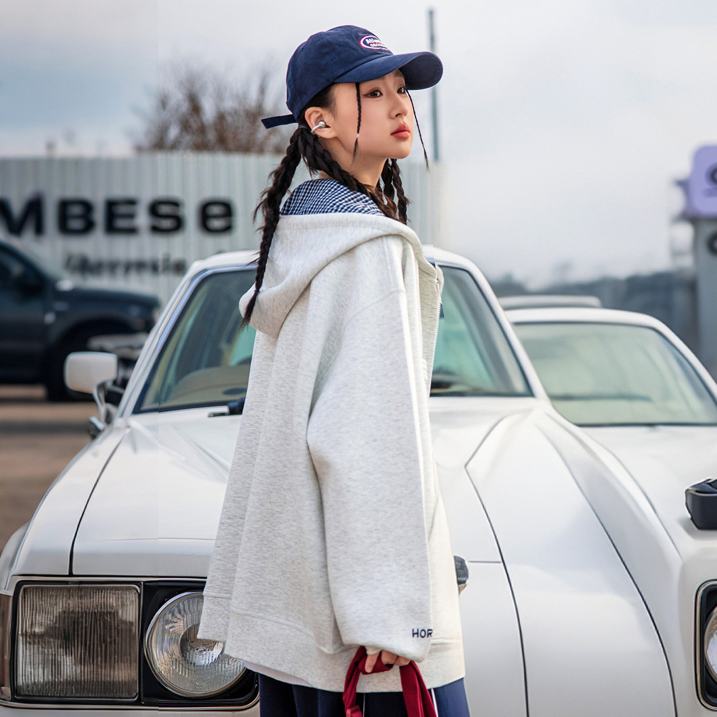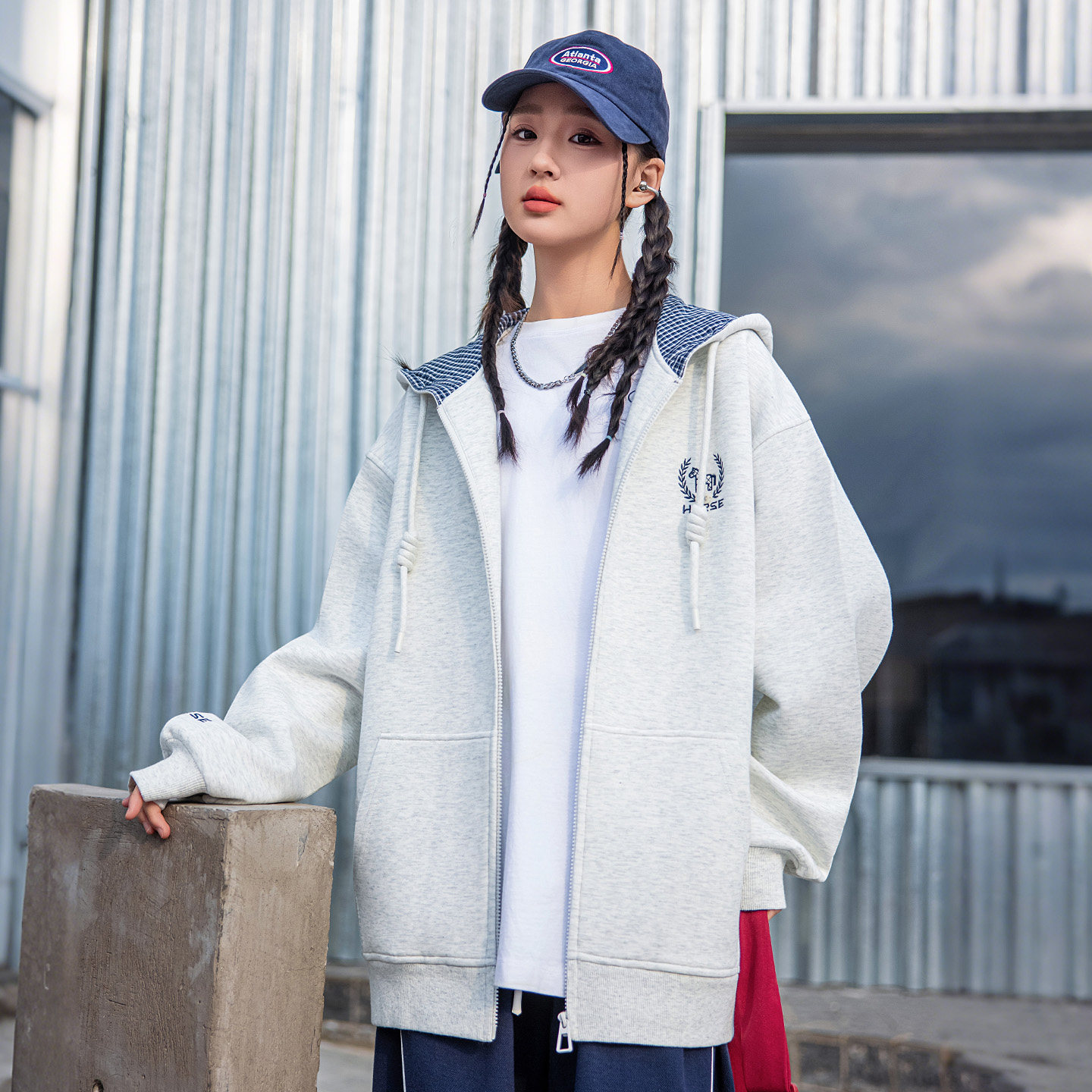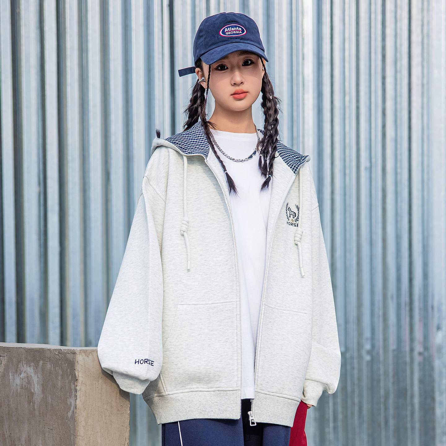 初中生休闲风连帽卫衣女2026春装少女大童拉链开衫宽松学院风外套