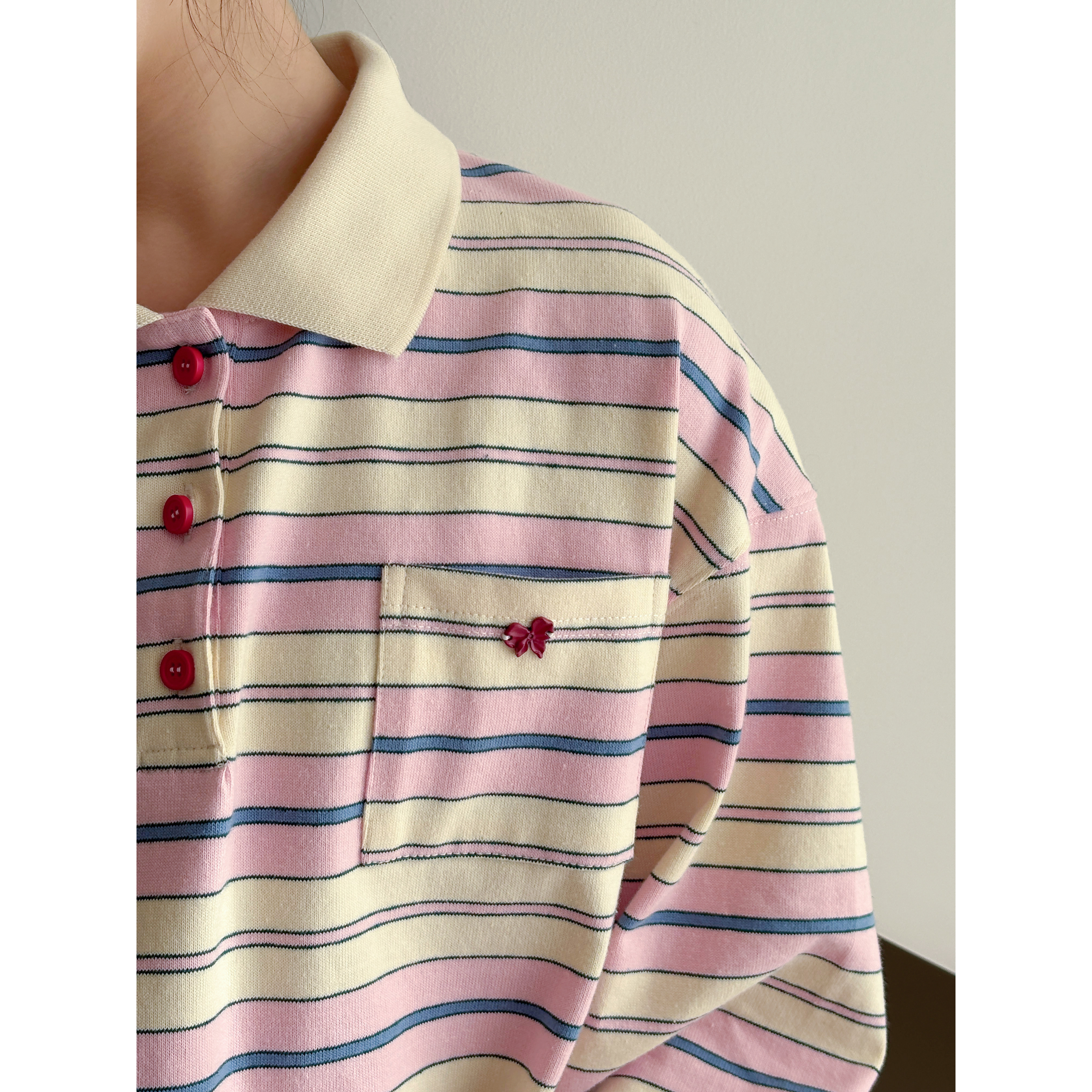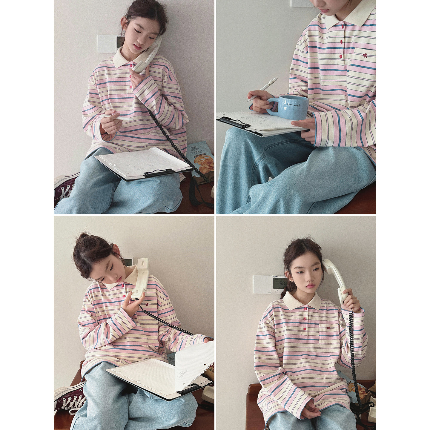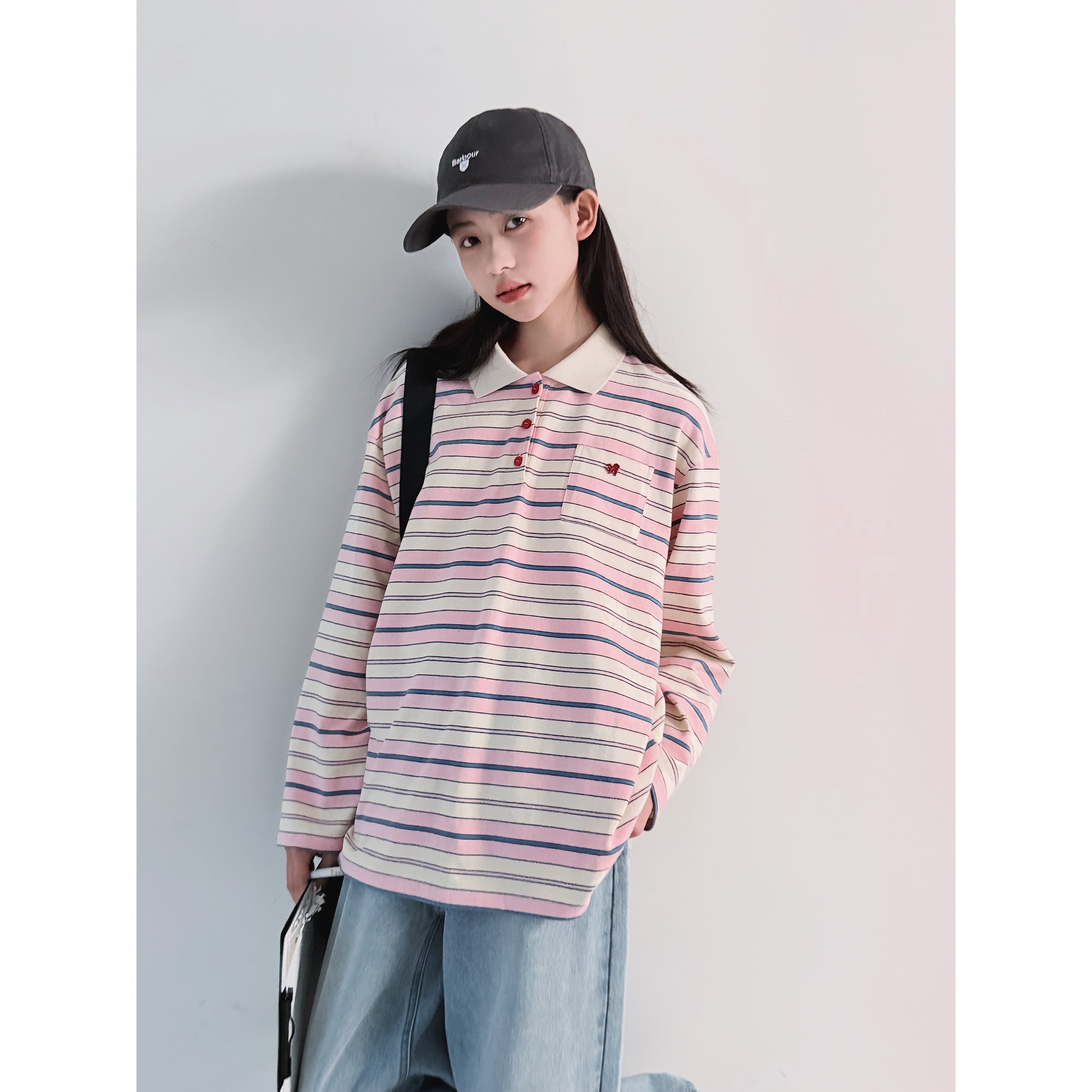 【调色盘】初中生女恤2026春装新款青少年条纹POLO衫复古休闲卫衣