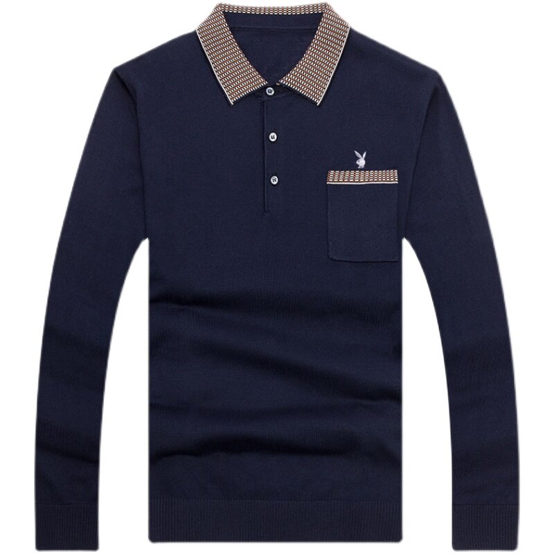 花花公子薄款中年男款长袖t恤宽松真口袋爸爸本命年红色婚宴衣服