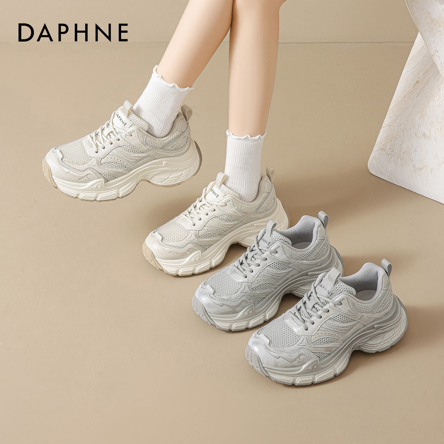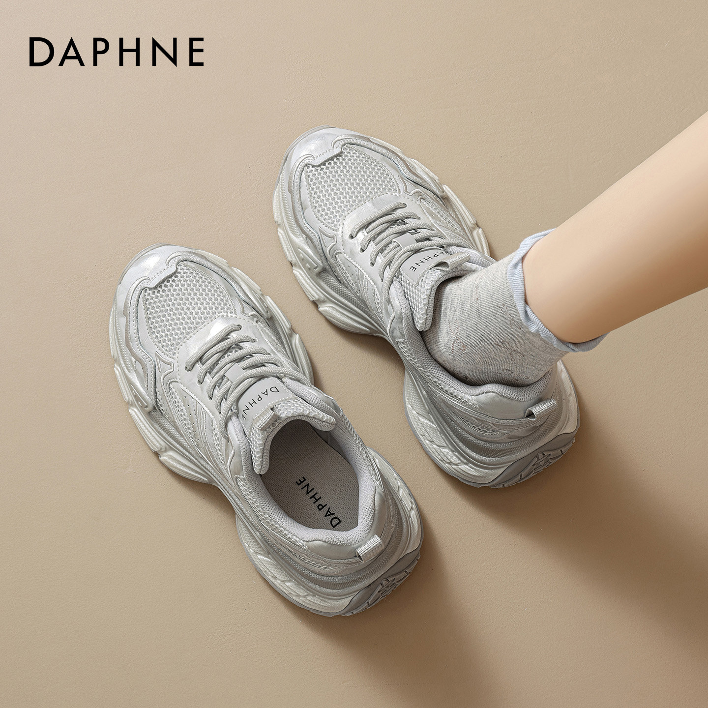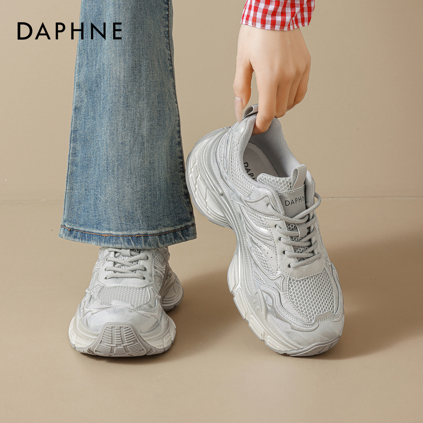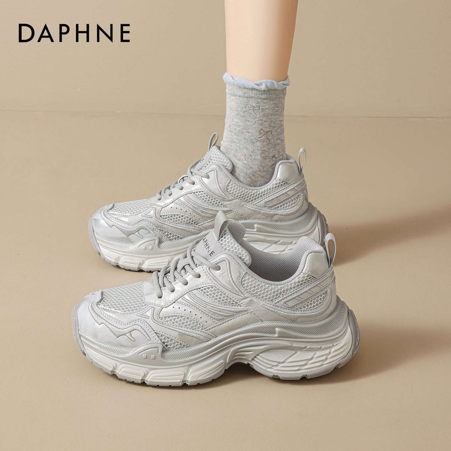 达芙妮银色老爹鞋女2026新款春季厚底增高运动休闲鞋网面透气女鞋