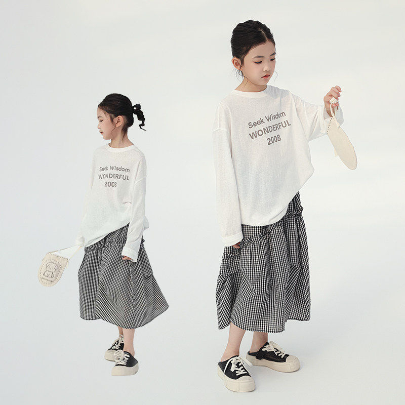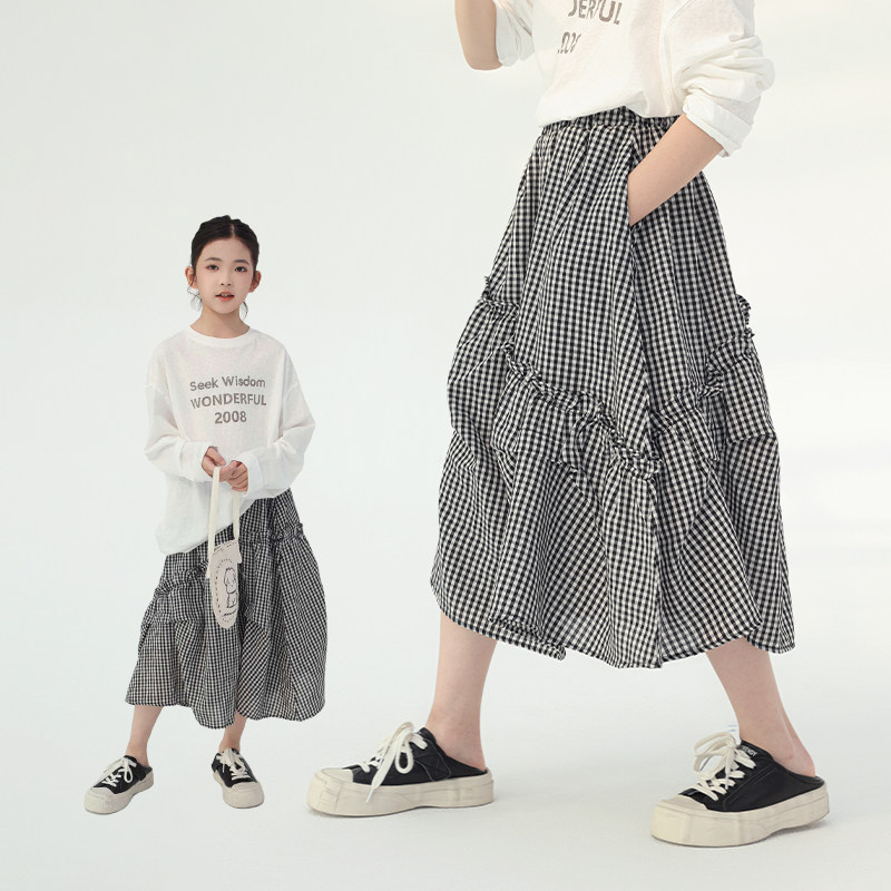 艾上朵女童半身裙2026春夏新款中大童洋气格子裙儿童女孩A字裙子