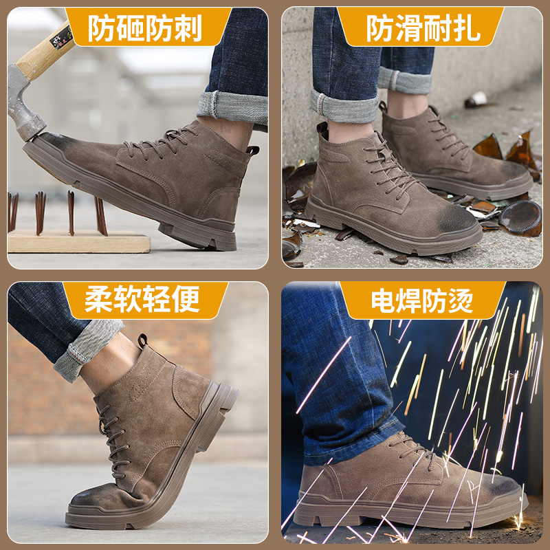 劳保鞋男款男士高帮防砸防刺穿工作鞋子钢头工地男鞋四季耐磨透气