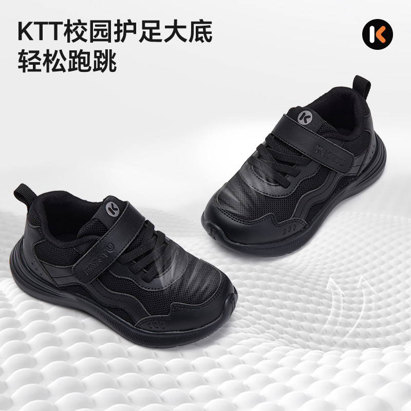 卡特兔儿童黑色运动鞋2025秋季新品开学季防滑耐磨透气女童跑步鞋