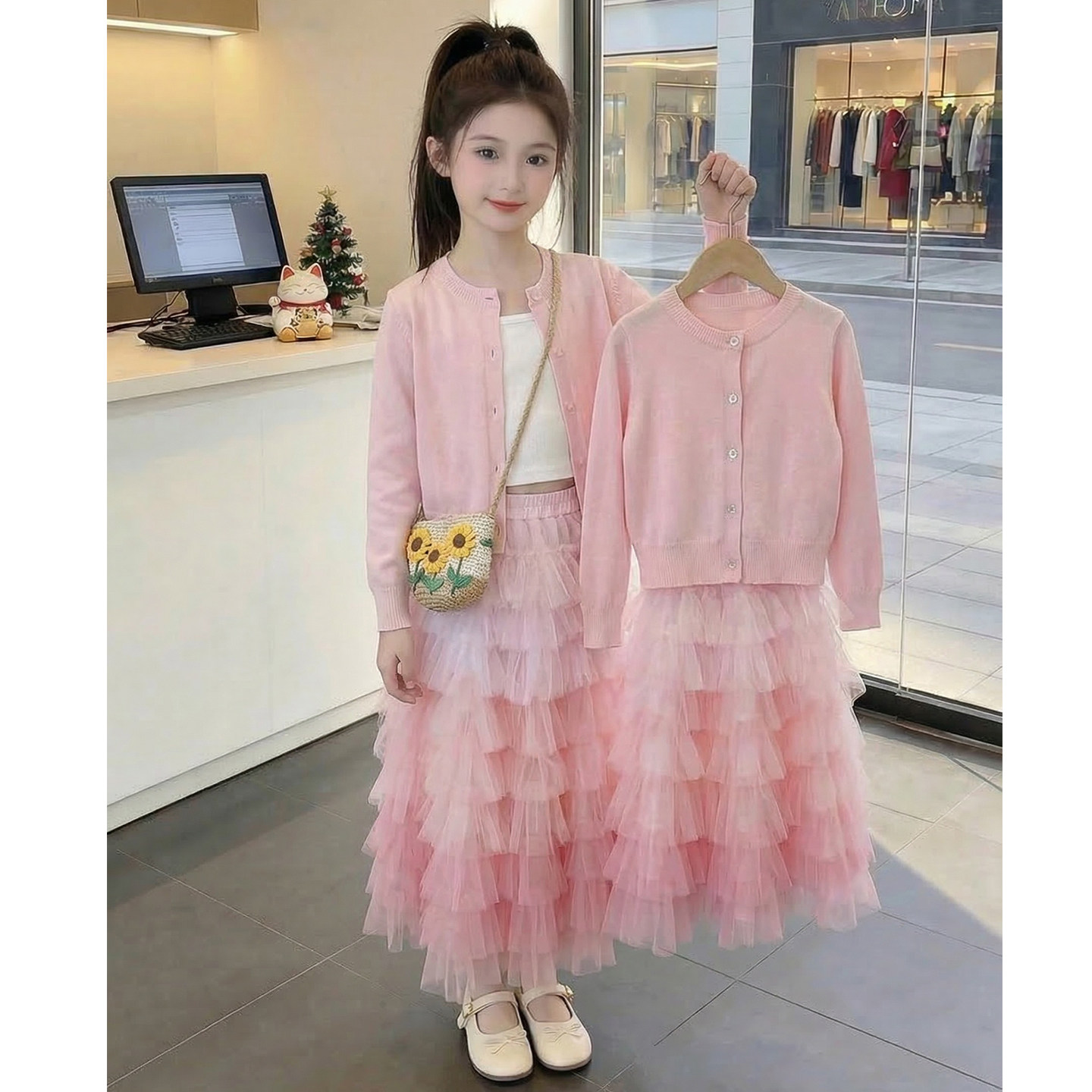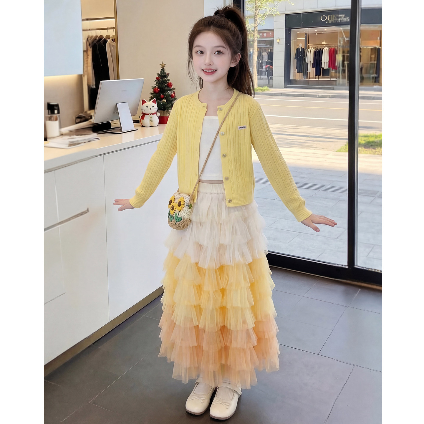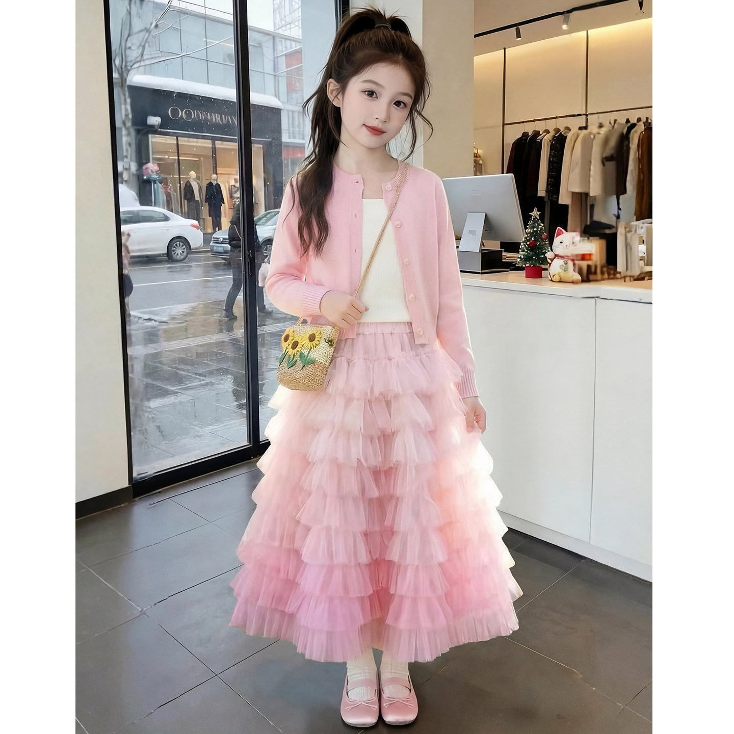 女童春装套装2026新款洋气儿童渐变网纱半身裙两件套女孩春季衣服