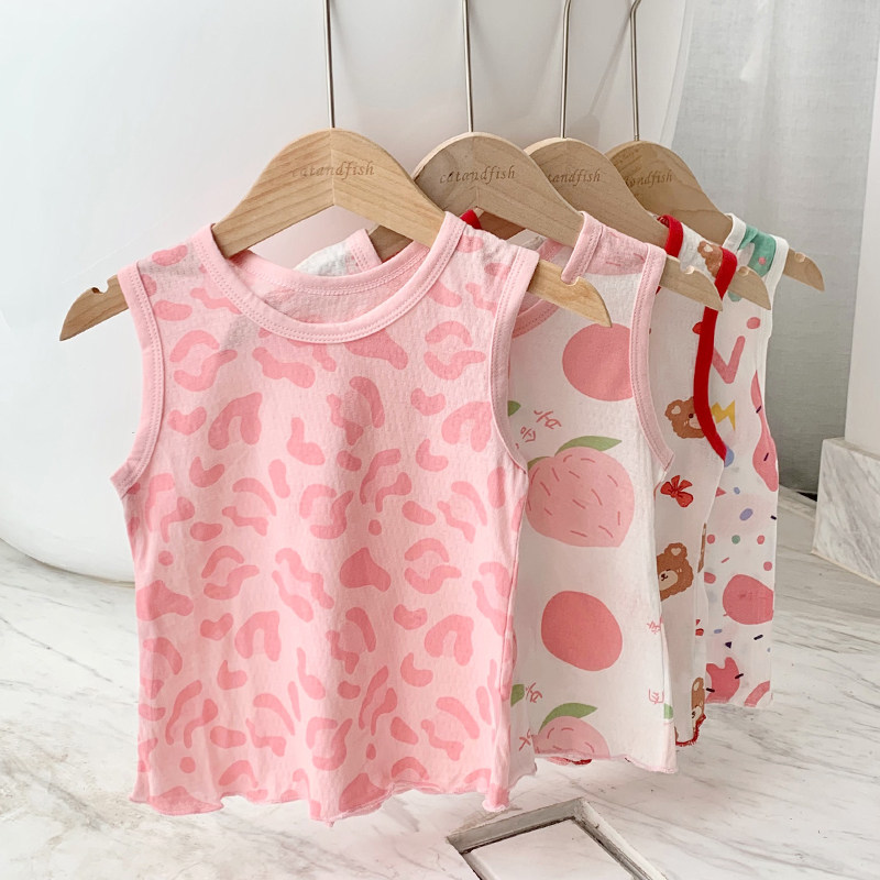 儿童无袖背心小女童纯棉吊带荷边上衣夏季宝宝薄款打底0-5岁外穿