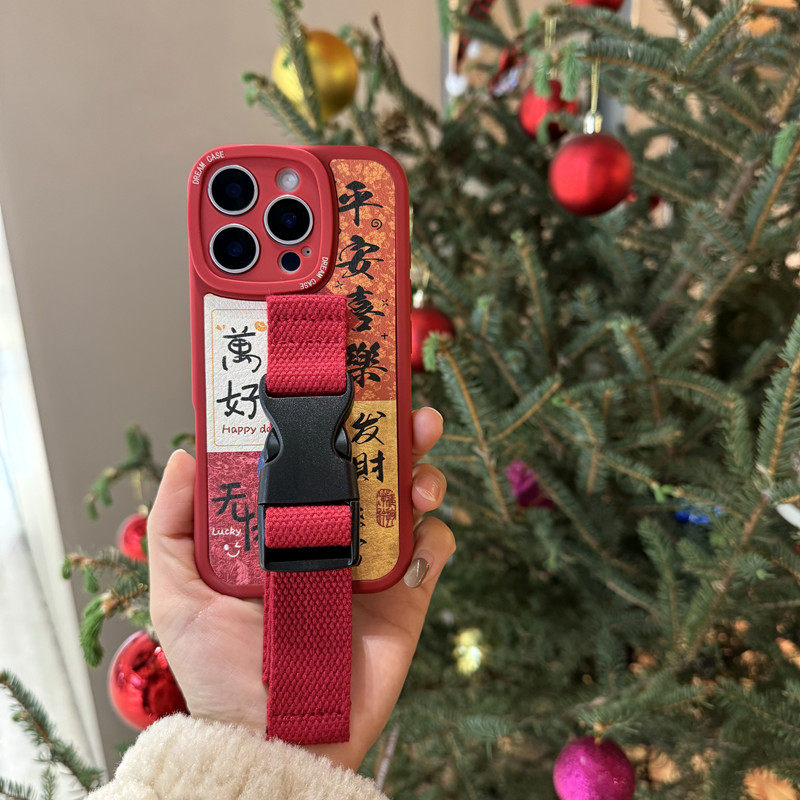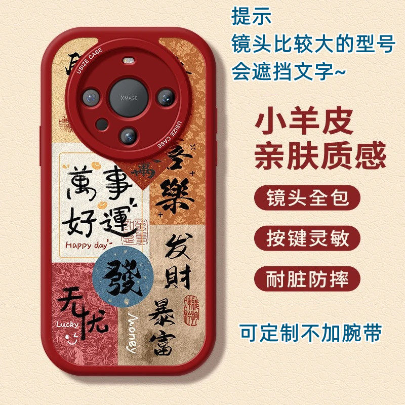 原创国风文字适用苹果17 16 15 14Pro Max手机壳腕带iPhone13支架华为mate60Pro+ P70小米15皮纹小众定制型号