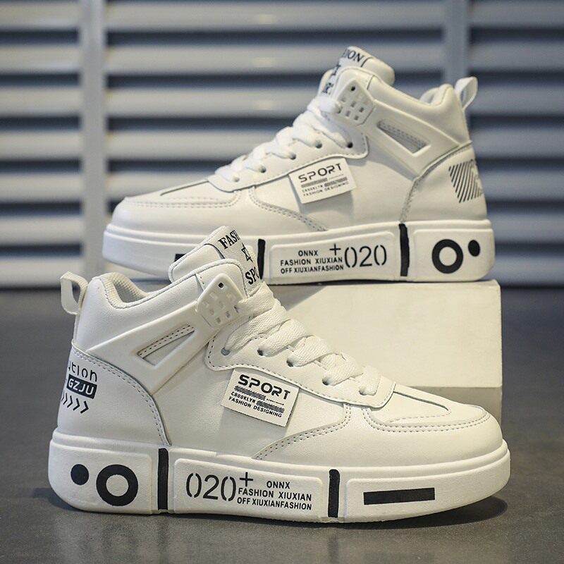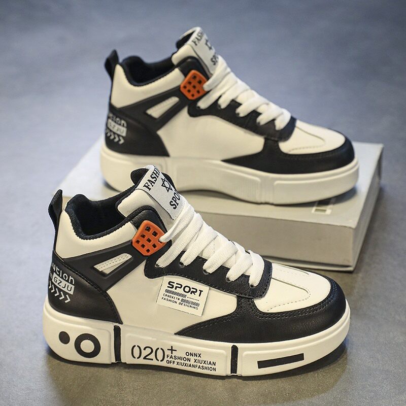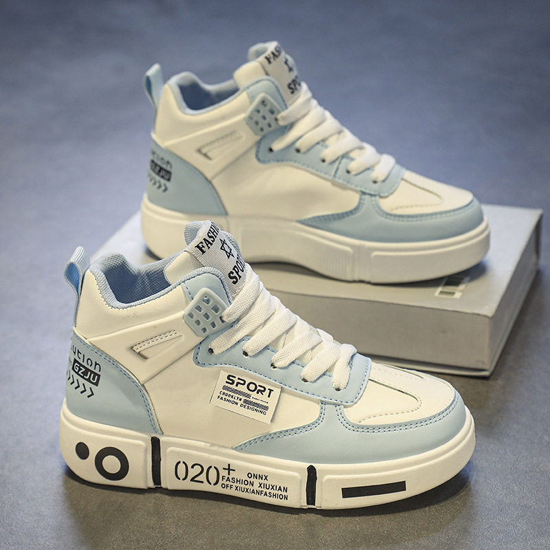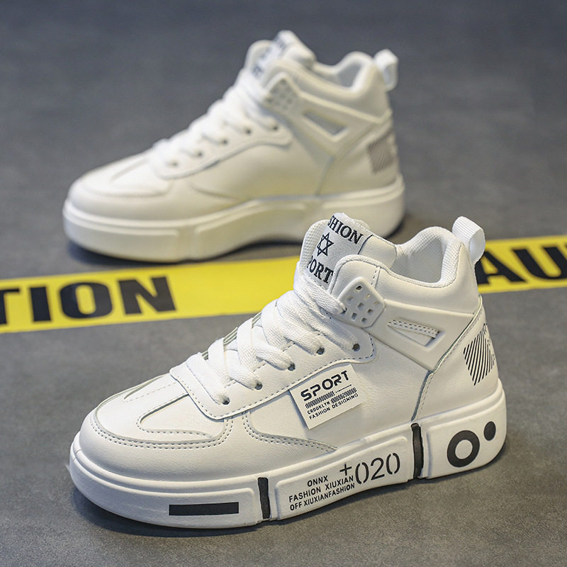 正品高帮女鞋秋冬款百搭皮面运动板鞋女款初中学生大童小白鞋防滑