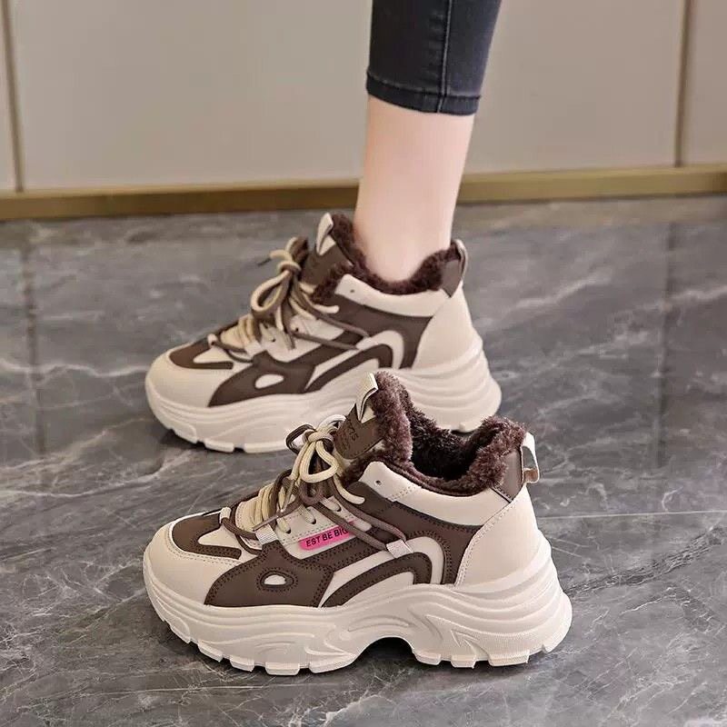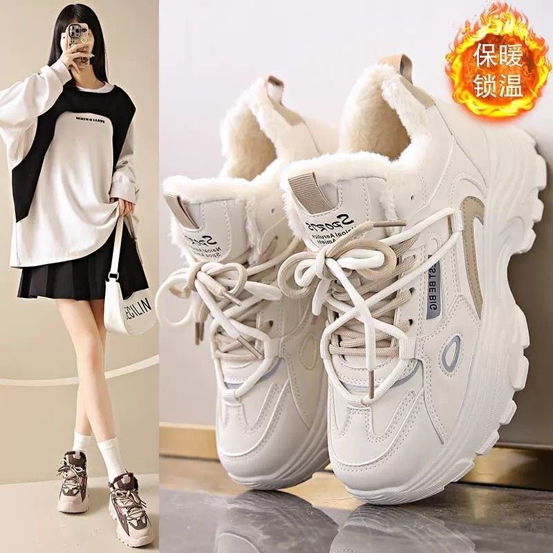 老爹鞋女款冬季新款初中学生运动鞋防滑防水加绒保暖加厚棉鞋