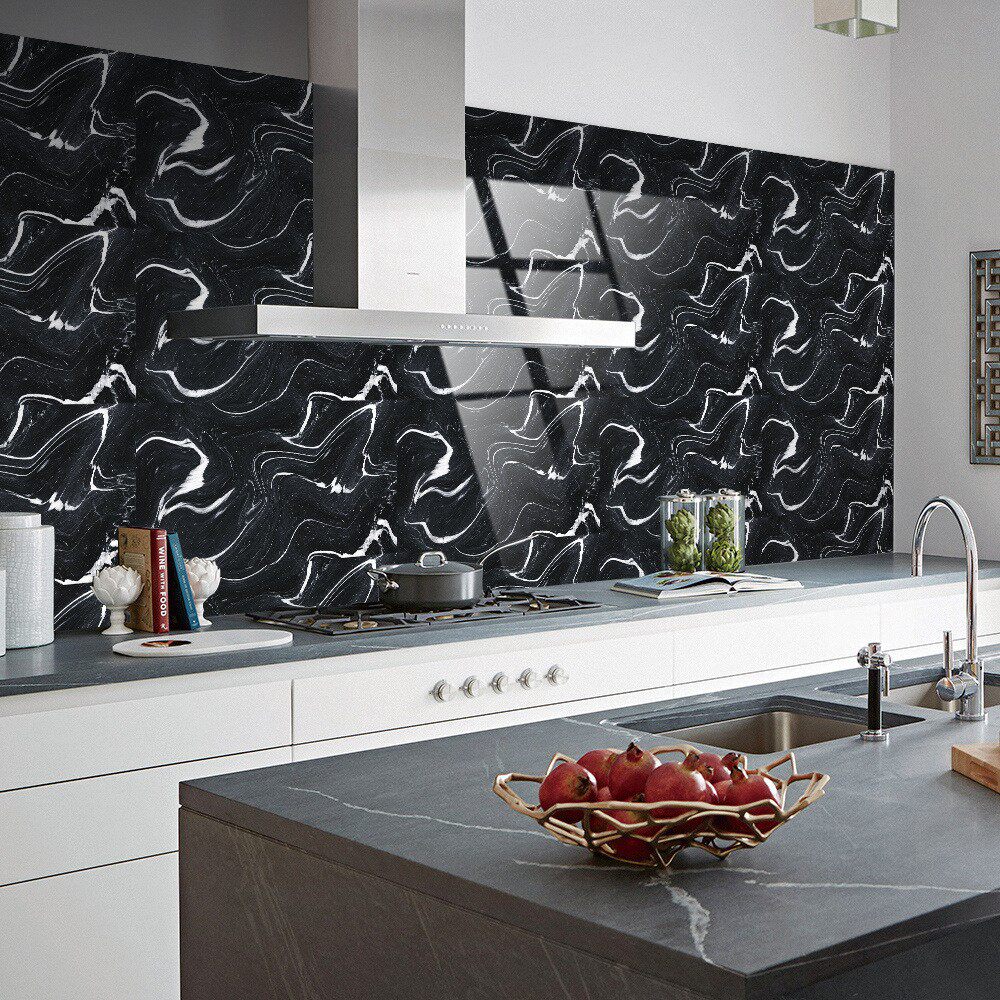 黑色流白纹仿大理石纹瓷砖贴地板楼梯墙面浴室厨房美化装饰墙贴纸