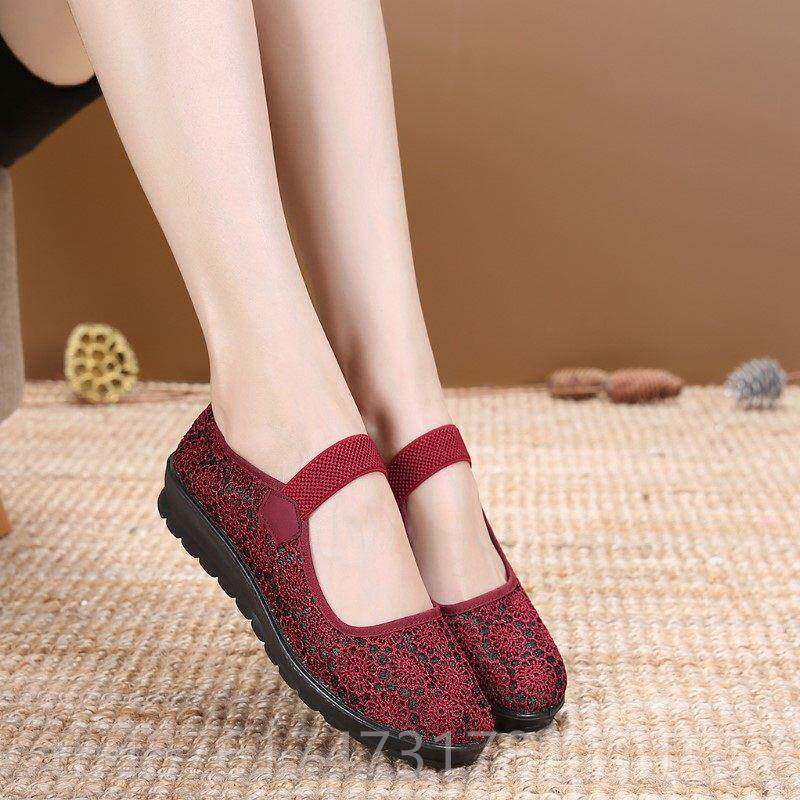 正品中老年女鞋春夏透气网面妈妈鞋软底老太太北京奶鞋平底网奶布