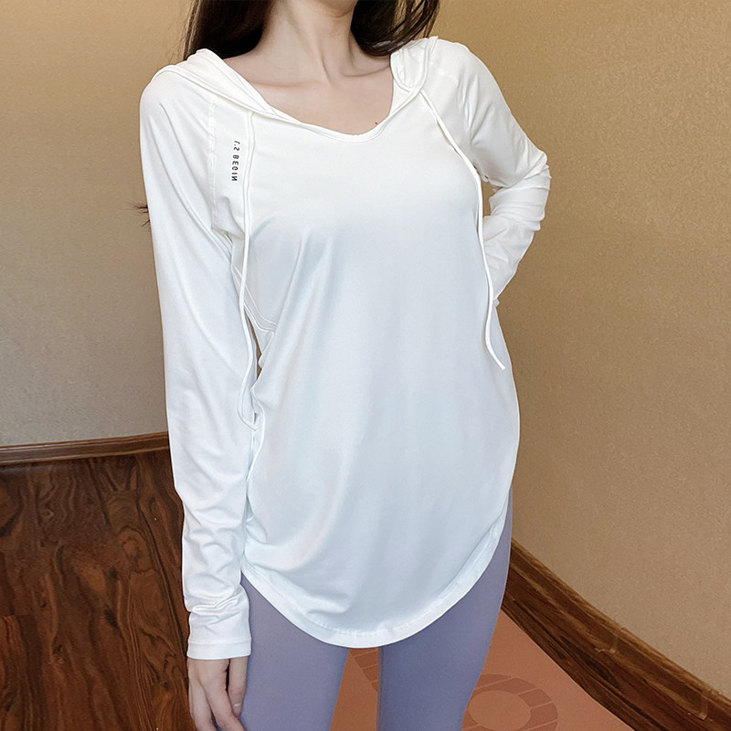 白色瑜伽上衣女高级感春夏中长款运动t跑步速干衣宽松长袖健身服