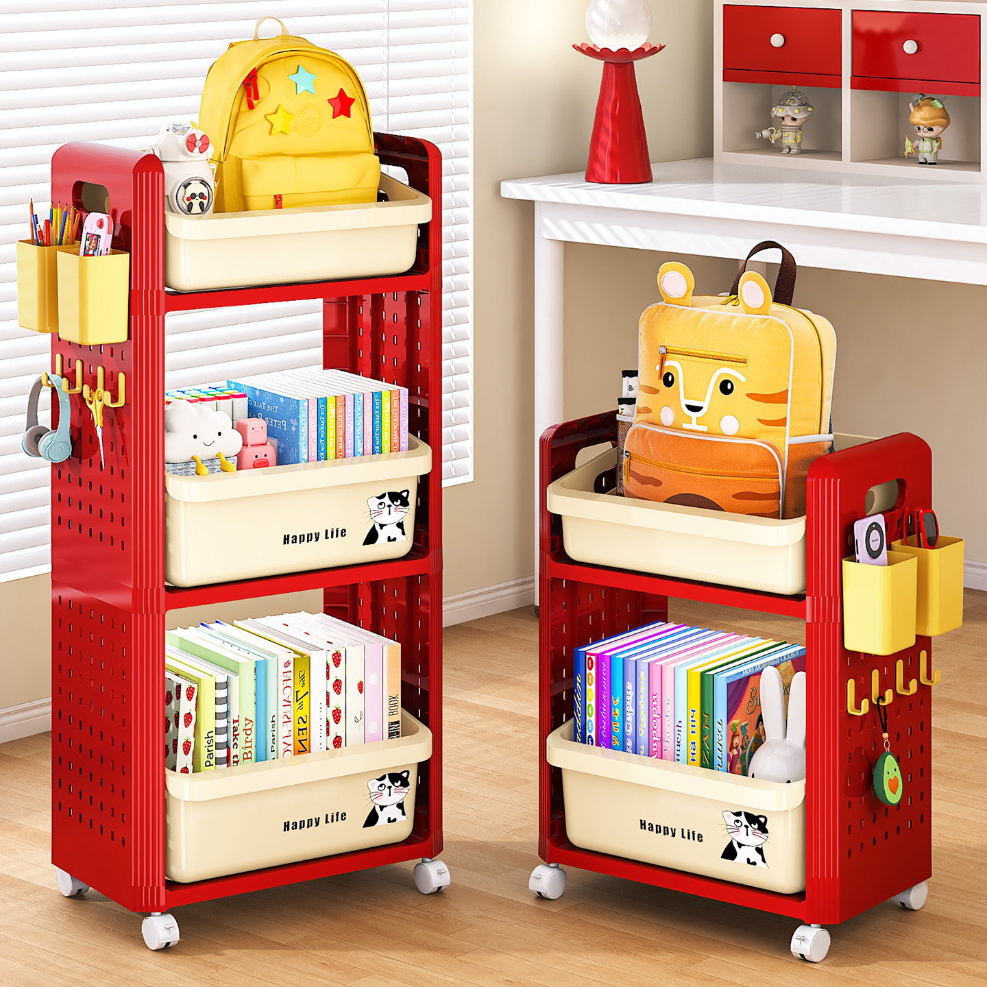 书包置物架可移动小推车书本收纳架带轮落地家用桌下多层放书包架